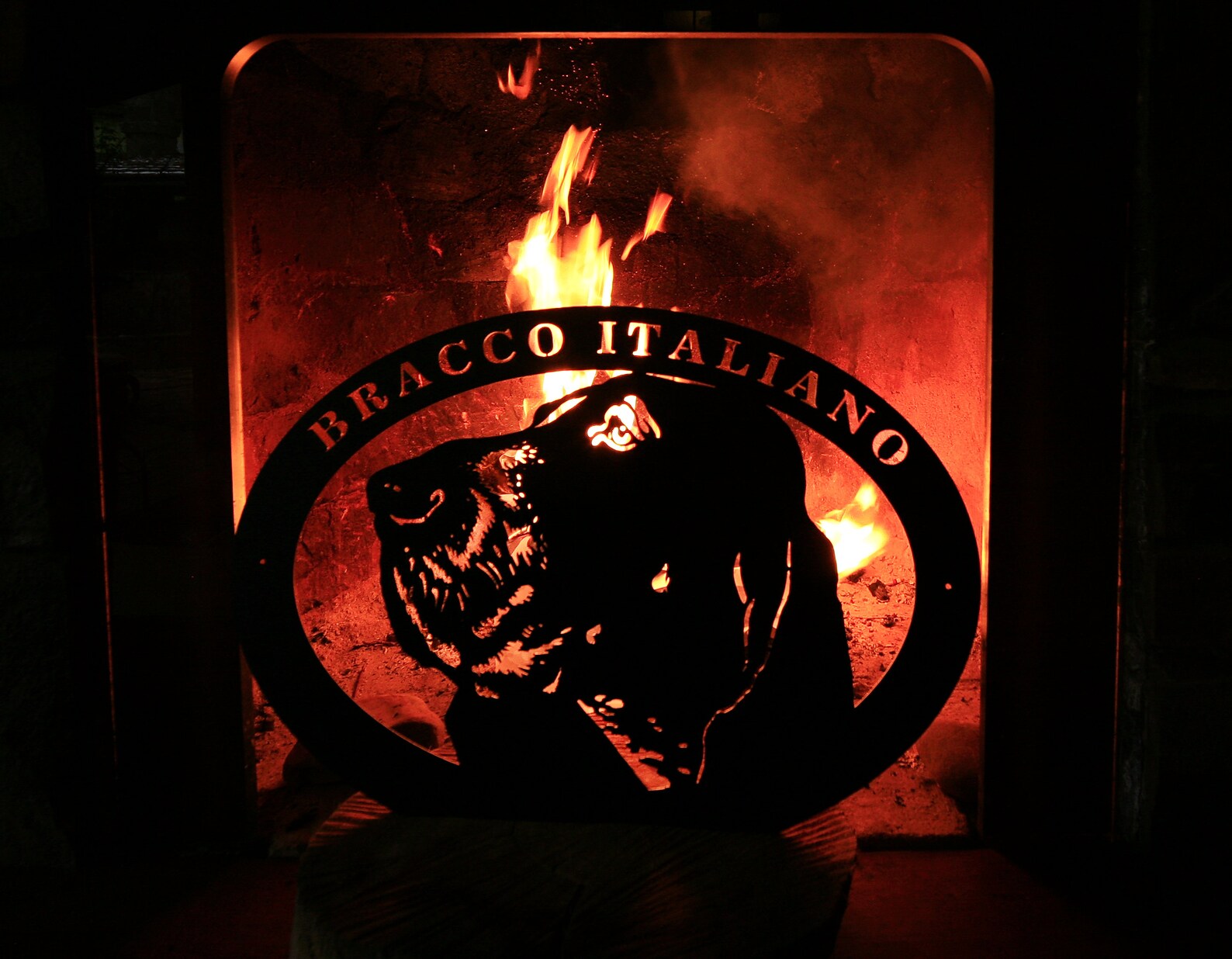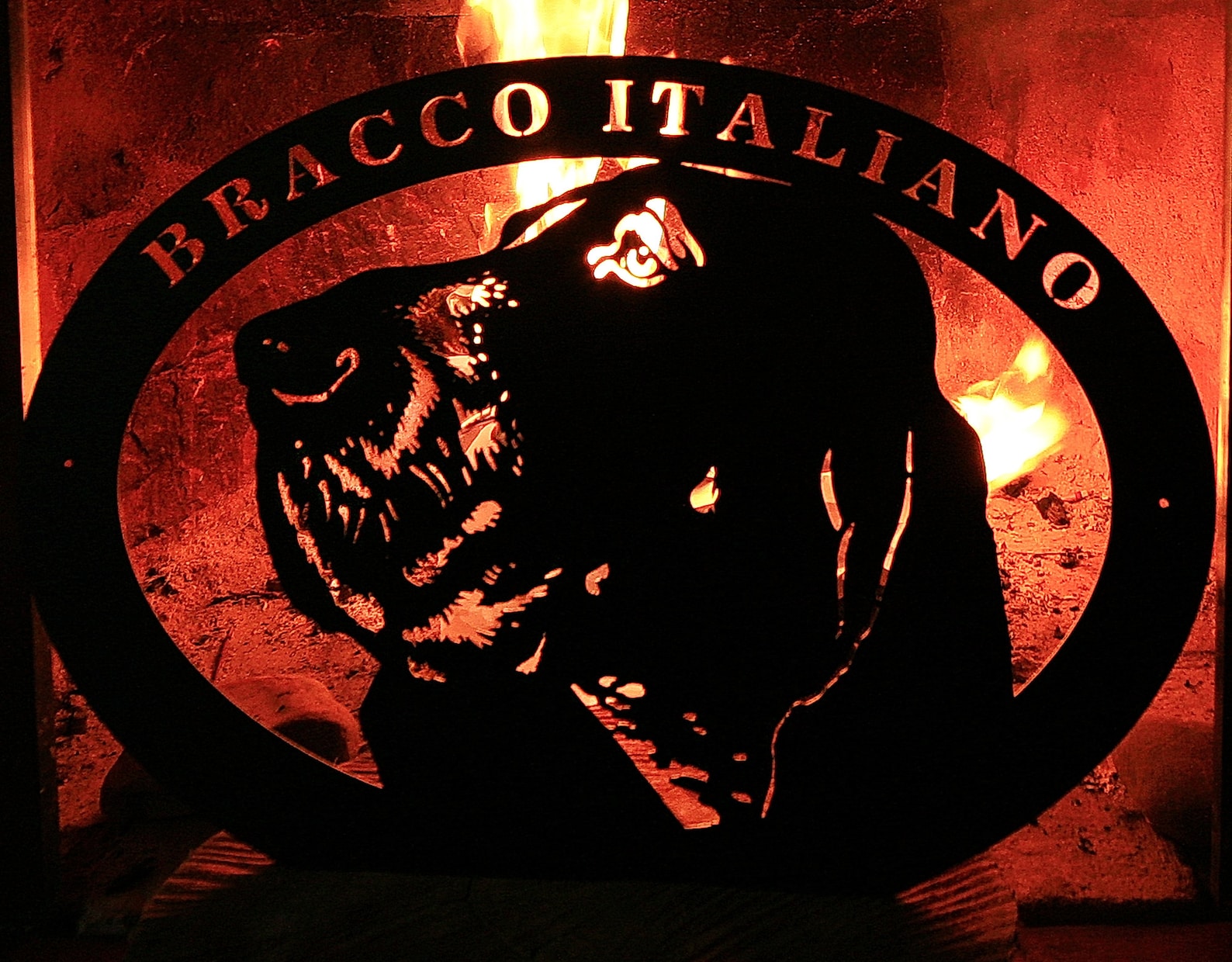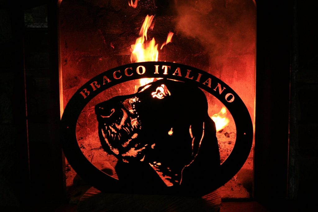 This metal sign "Bracco Italiano" is made from high quality 16 gauge steel and finished in a weatherproof powder coat finish.