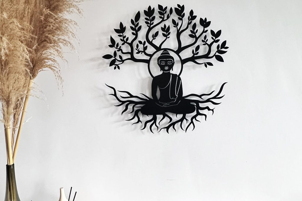 Buddha Metal Wall Art, Hindu Wall Decor, Yoga Studio Decor, Meditation Art, Om metal sign, Spiritual accessory, Tree of Life and Buddha Decor, metal wall art, Hindu decoration, yoga studio decor, meditation art, spiritual accessory, tree of life, Buddha decoration, spiritual balance, inner peace, yoga practice, spiritual journey, inner transformation, mystical atmosphere, spiritual symbols, inner journey, nourish your soul, home decoration, spiritual inspiration.