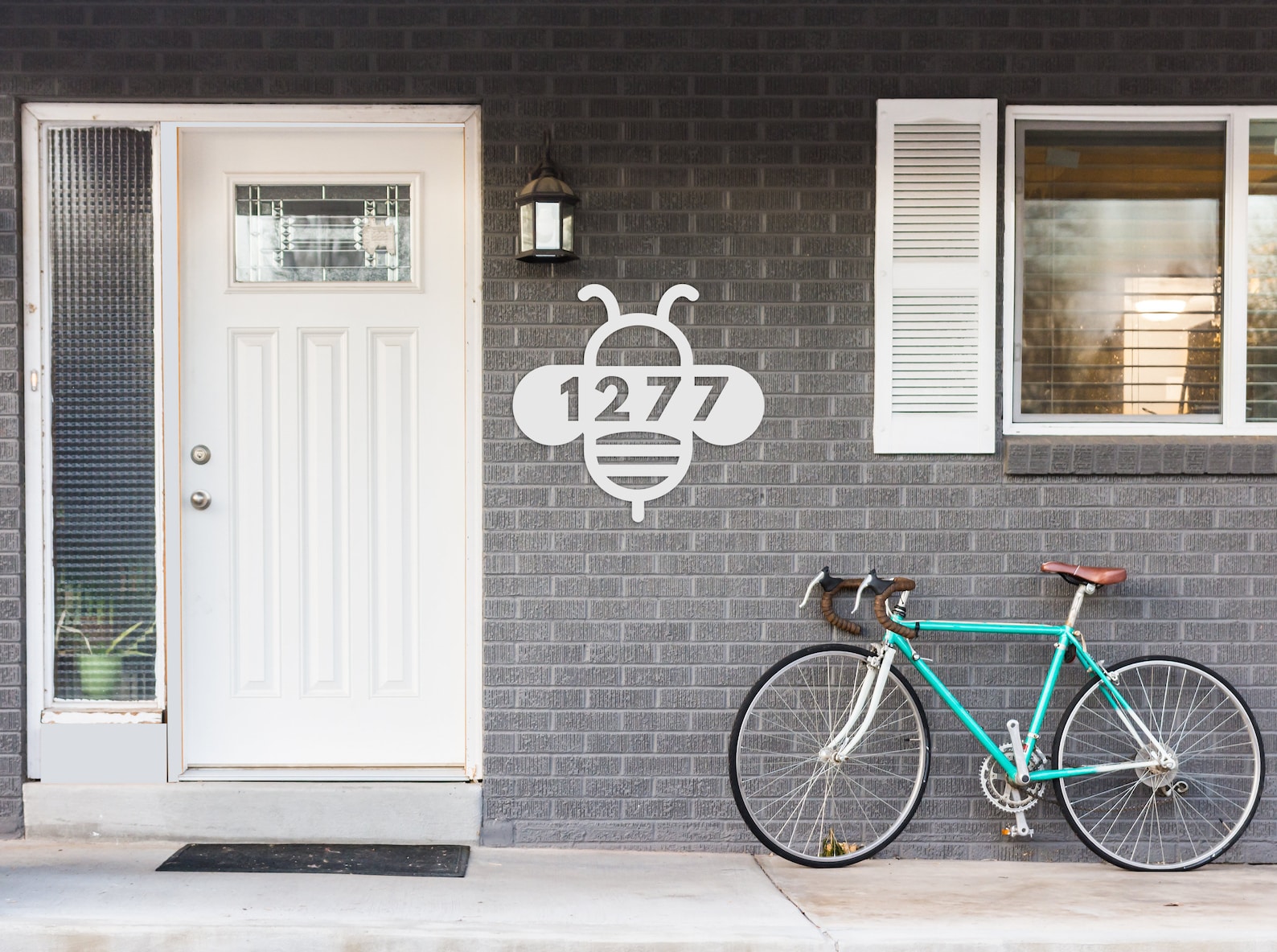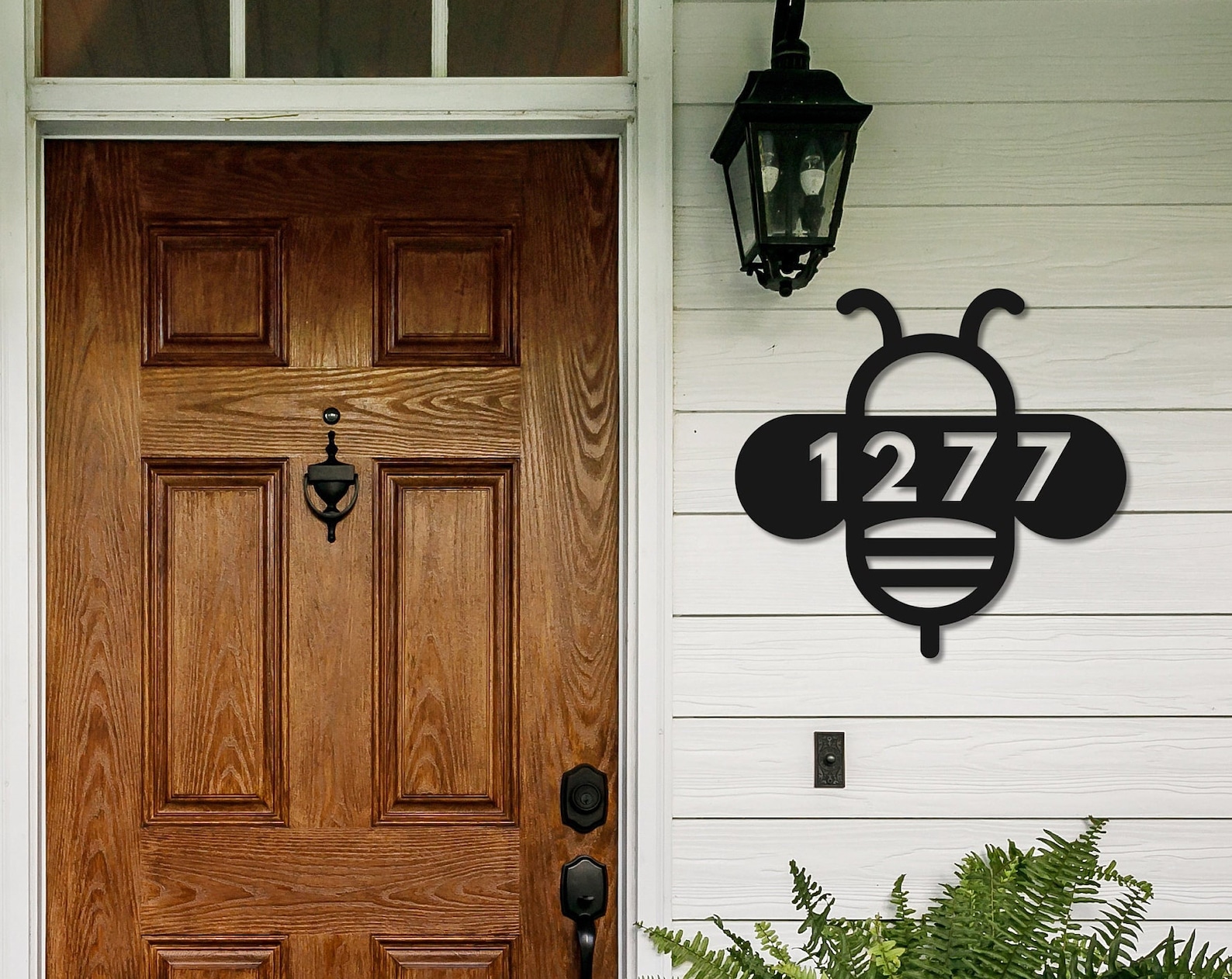 House numbers with extra expression, this one has your number in a bee! I am an artist and designer and I designed these in Adobe Illustrator at home (cat by my side). After you place your order I will send you a mock up so you can see how your numbers look in the design. Upon approval I will send the file off to Teelaunch, my production partner, where they will cut your sign out of 18 gauge steel and powder spray coat it so it ends up feeling sort of like cast iron but it9;s much thinner, a little thinner than a quarter but strong. Their production time is 5-7 days which means that you should receive it in about 10 days unless it9;s holiday rush time in which case it will probably be 2 weeks.