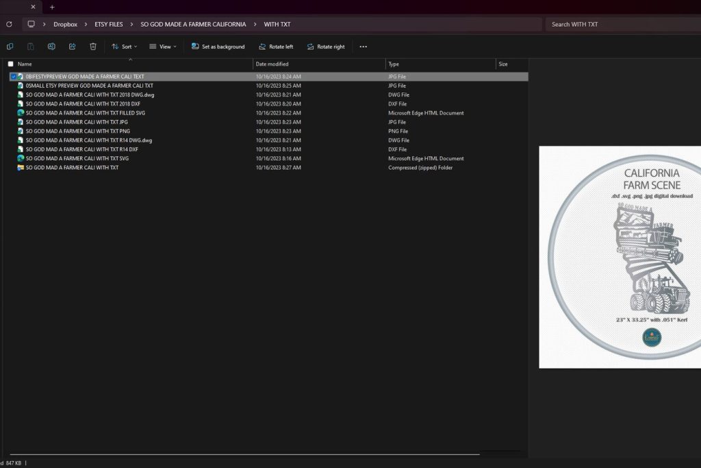 Introducing our California sign laser cutting files for cnc, a detailed god made a farmer sign for metal. This farm and combine sign svg, tractor dxf for laser cutters file bundle includes svg jpg png dwg (r14 & 2018) and dxf files (r14 & 2018) for a full collection of file formats to suit your needs. These versatile cutting files are perfect for creating custom plasma cut ranch signs on your cnc machine and feature clean lines and minimal nodes; they have been sheetcam tested for tolerances.