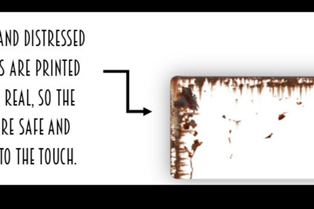 NOTE: All rustic add-ons including any rust, distressed marks, etc. are printed on and not real, so the signs are smooth to the touch.