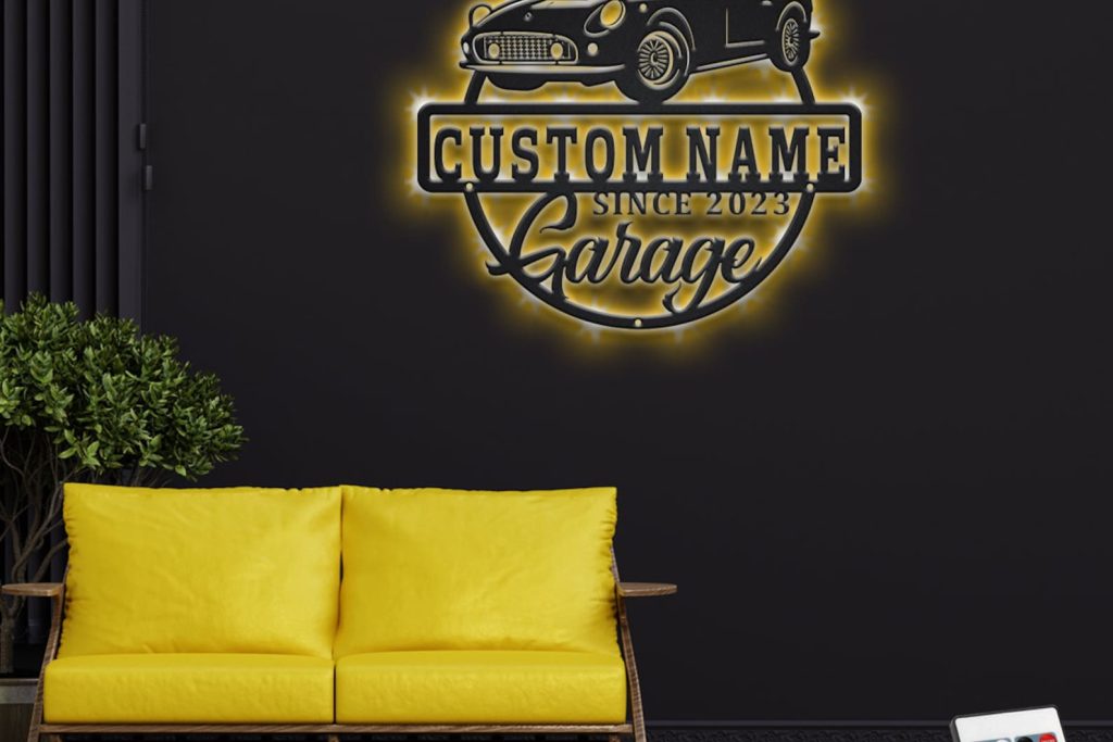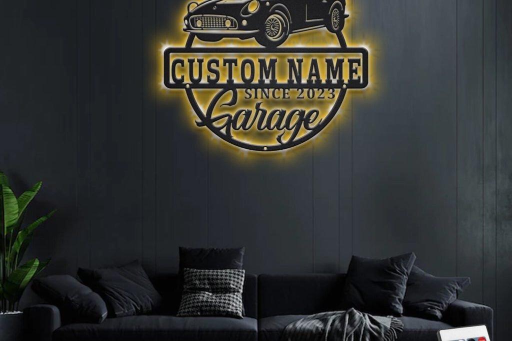 Car Garage Sign – LED Personal Metal Plaque Gift