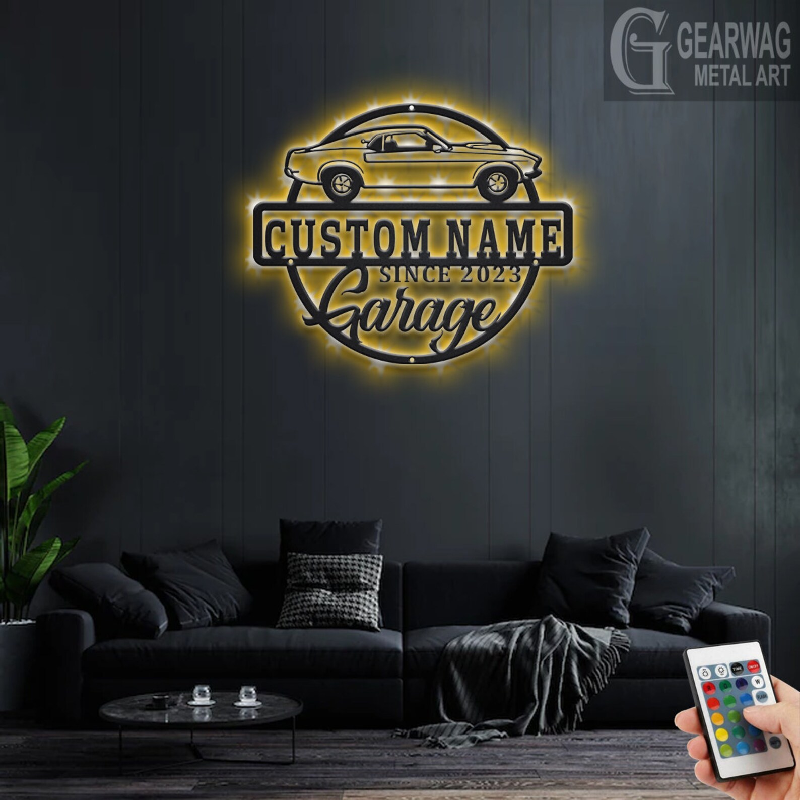 Car Garage Sign – LED Personal Metal Plaque Gift