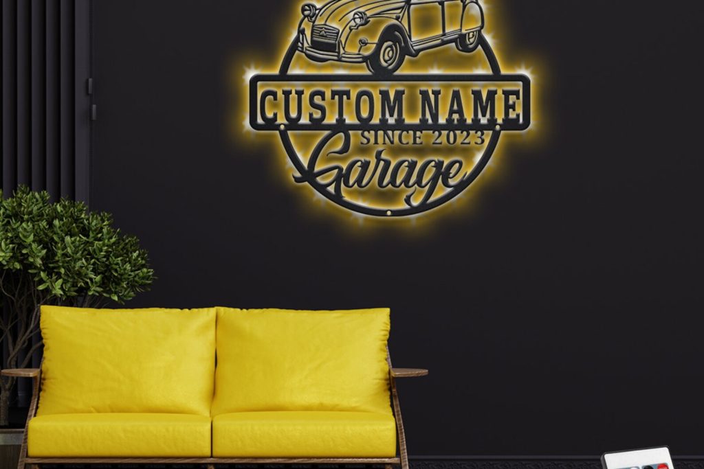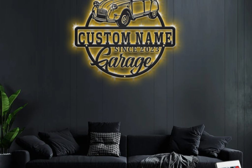 Car Garage Sign – LED Personal Metal Plaque Gift