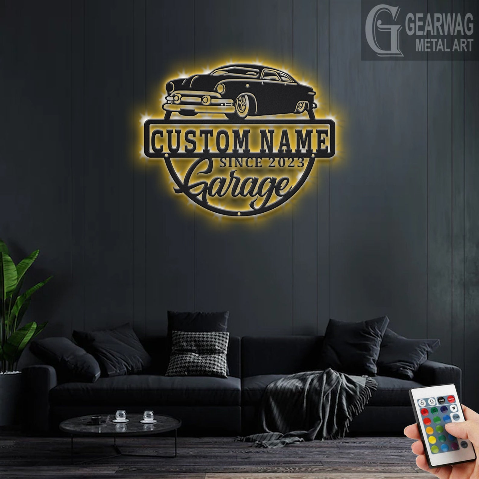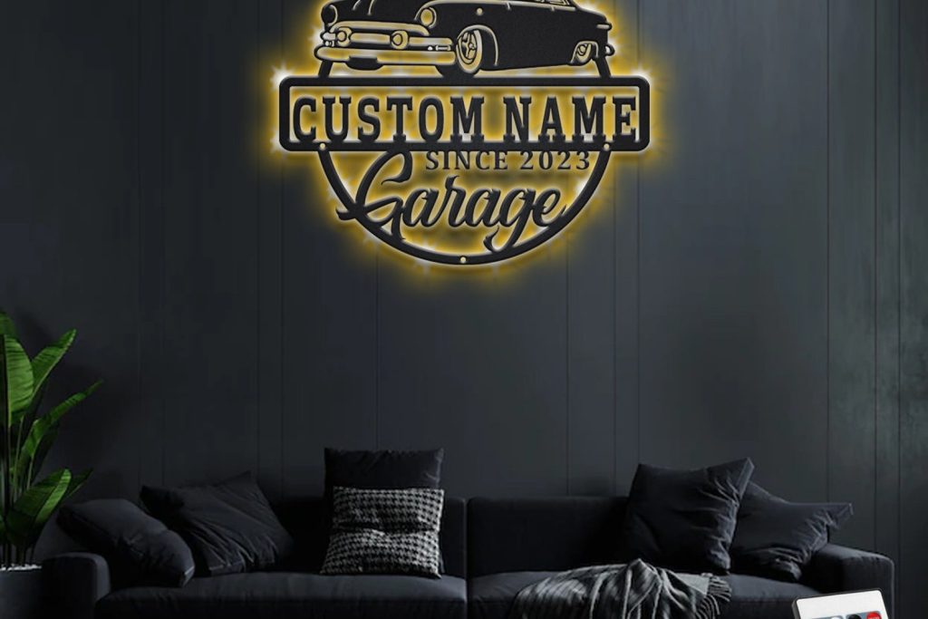 Car Garage Sign – LED Personal Metal Plaque, Man Cave