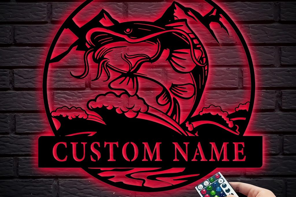 This custom Catfish Fishing metal wall art is absolutely perfect for your home decor! Not only will this Catfish name logo be a unique addition to your home decor, it will also make a perfect gift idea for any fisherman who enjoys fishing.
