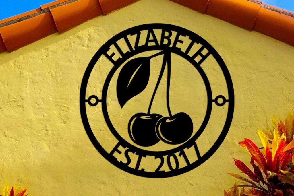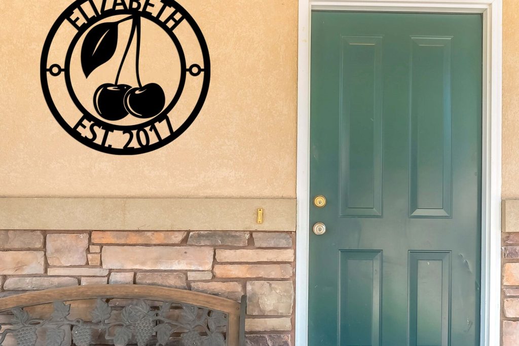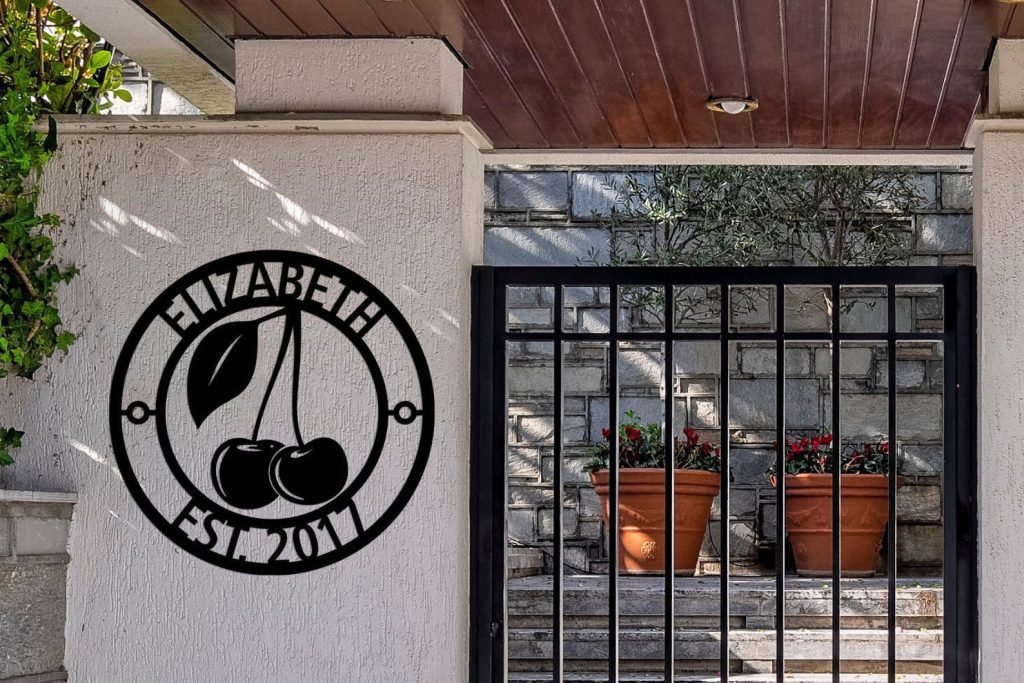 Be the first to review “Cherry Family Name Sign: Personalized House Number”