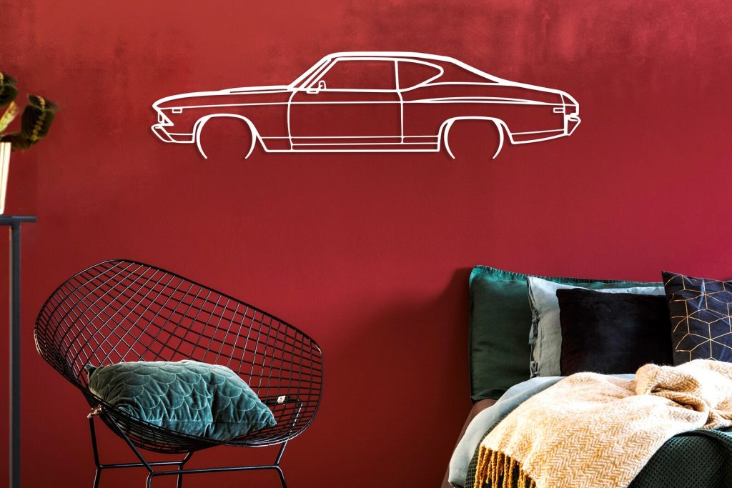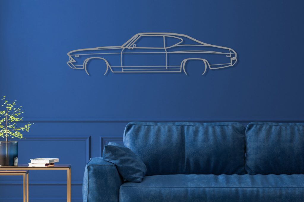 Chevelle SS Metal Car Silhouette, Classic Automotive Decor, Chevelle SS 1969 Garage Sign, Father Gift, Metal Car Line Art, Large Car Art