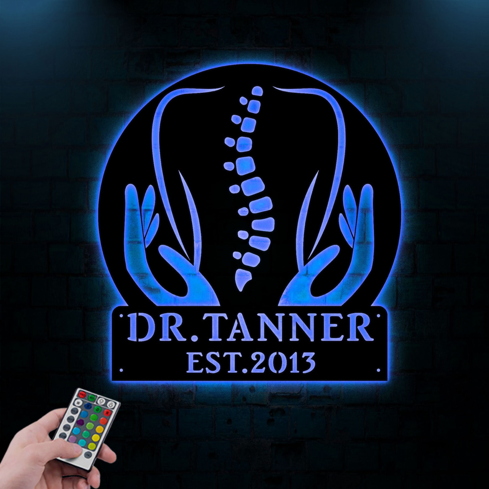 Personalized Chiropractor Metal Sign With Led Lights, Chiropractic Metal Office Sign, Gift For Physiotherapist, Kinesiologist, Physiotherapy
