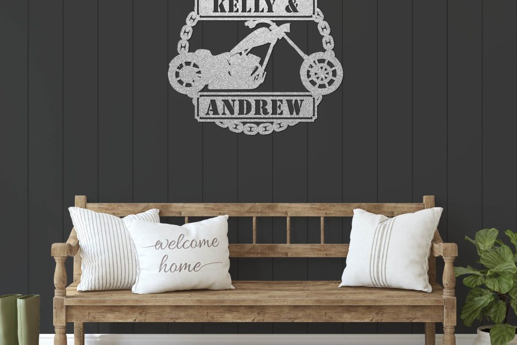 Sweet Ride9;s laser-cut metal Chopper Personalized Garage Sign is the perfect addition to your man cave or garage