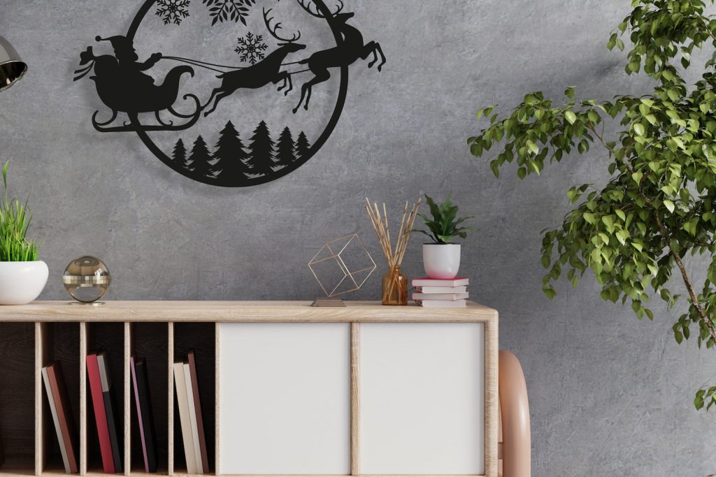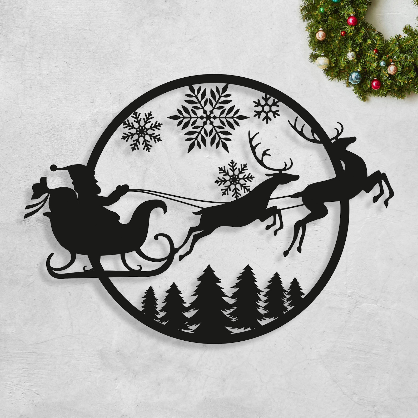 Christmas Santa Sleigh Metal Sign