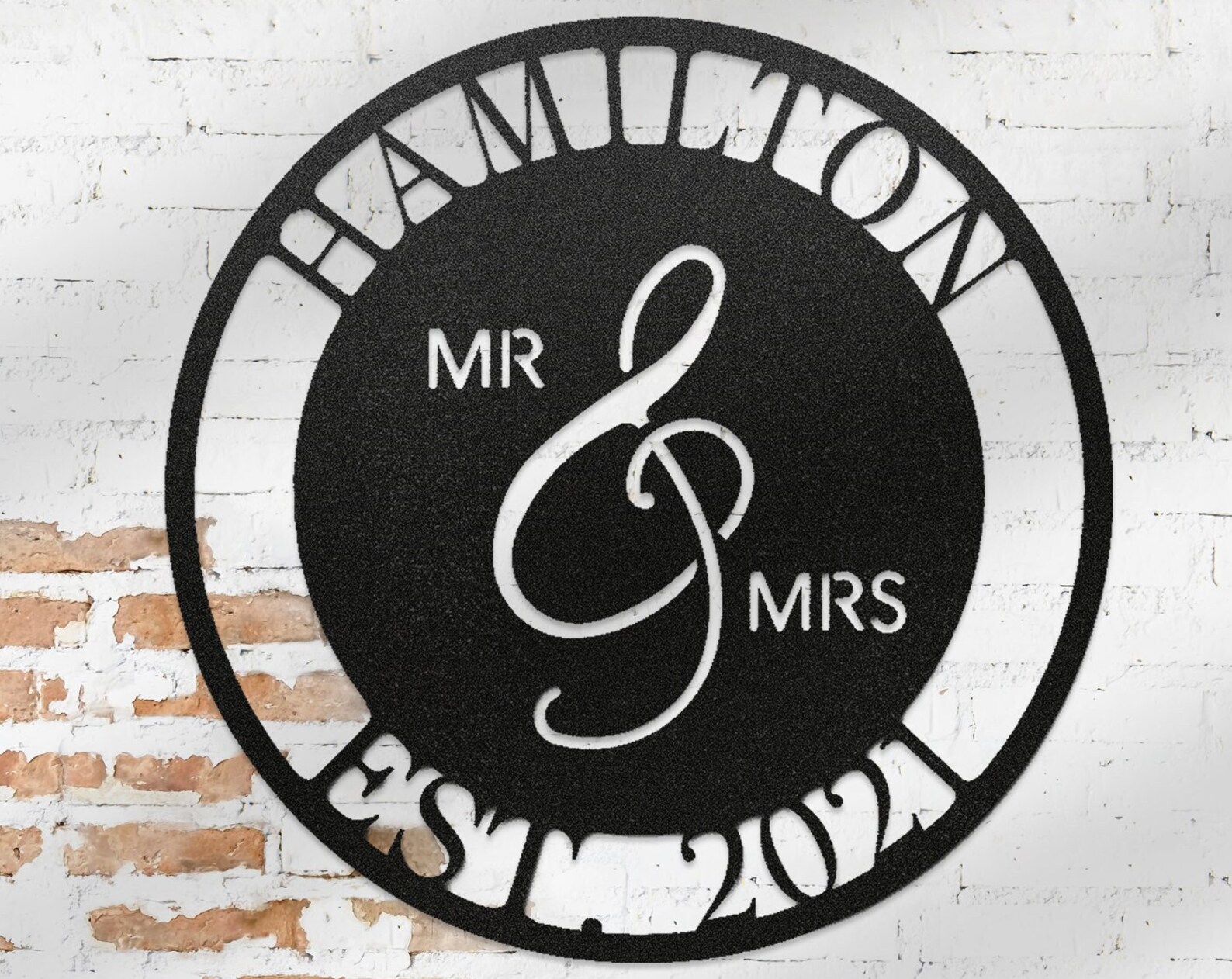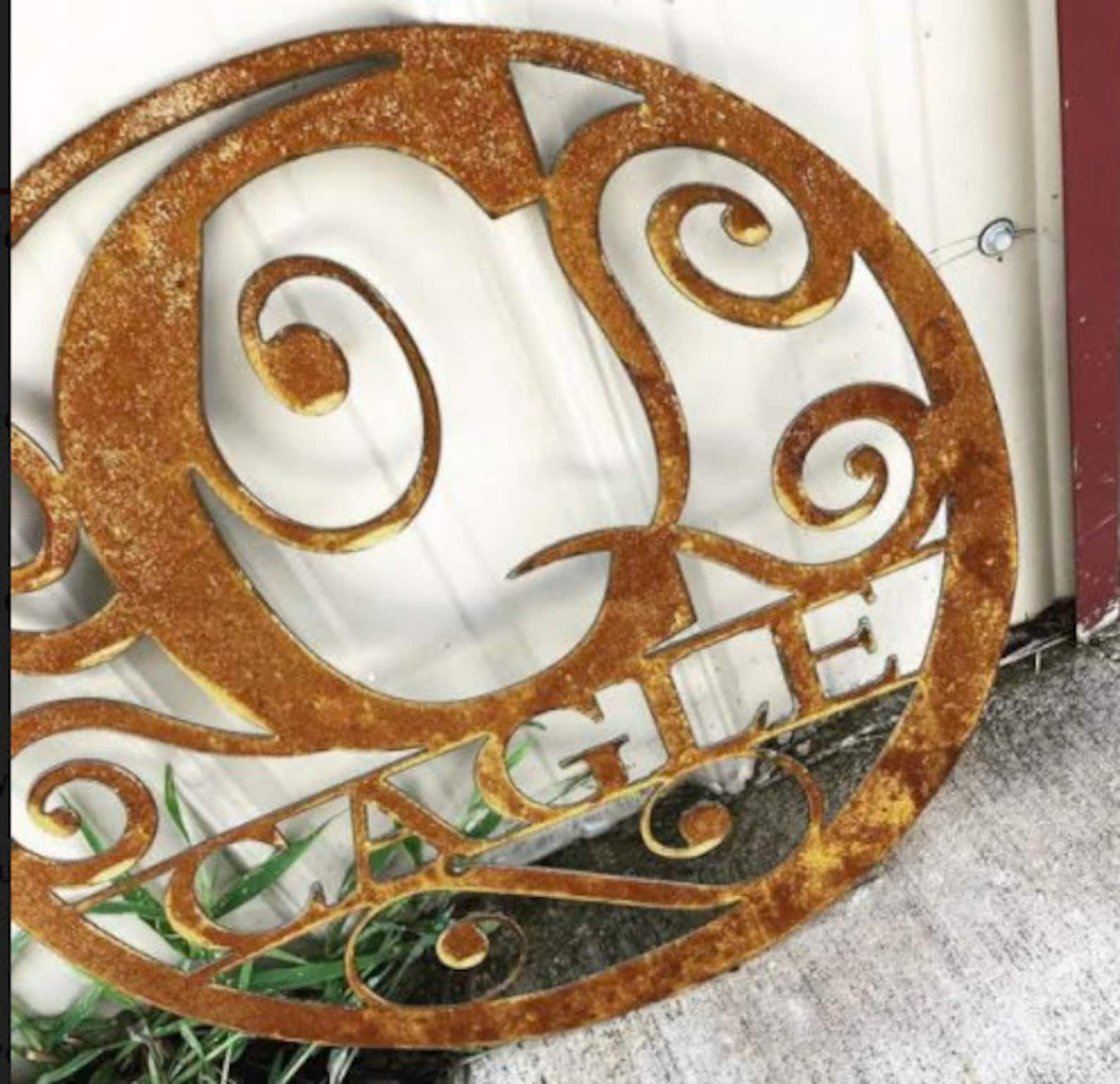 Metal Family Name Circle Monogram! Customize your name on our unique swirl pattern monogram! Please pick font and color in the options below.