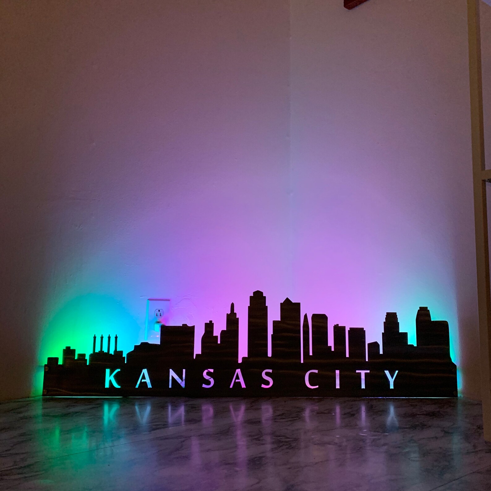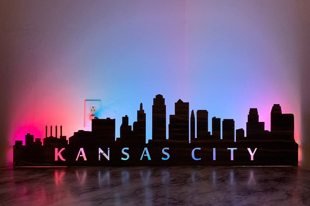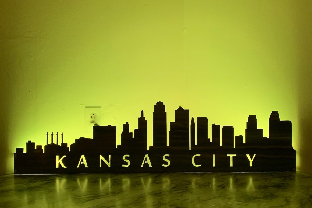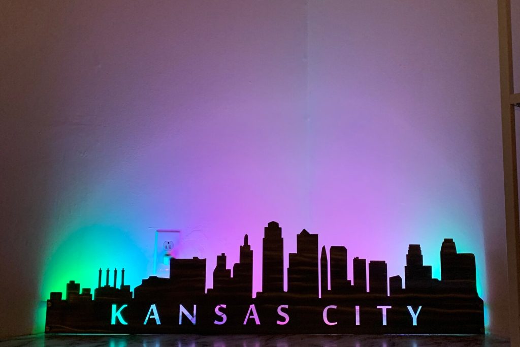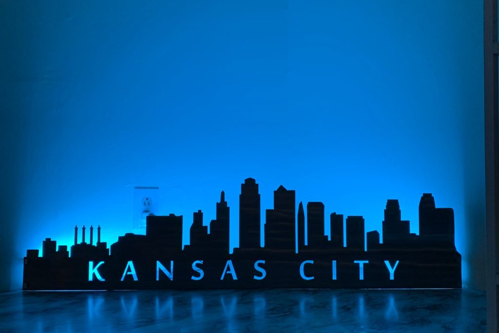 City Skyline Metal Wall Art with LED and Standoffs