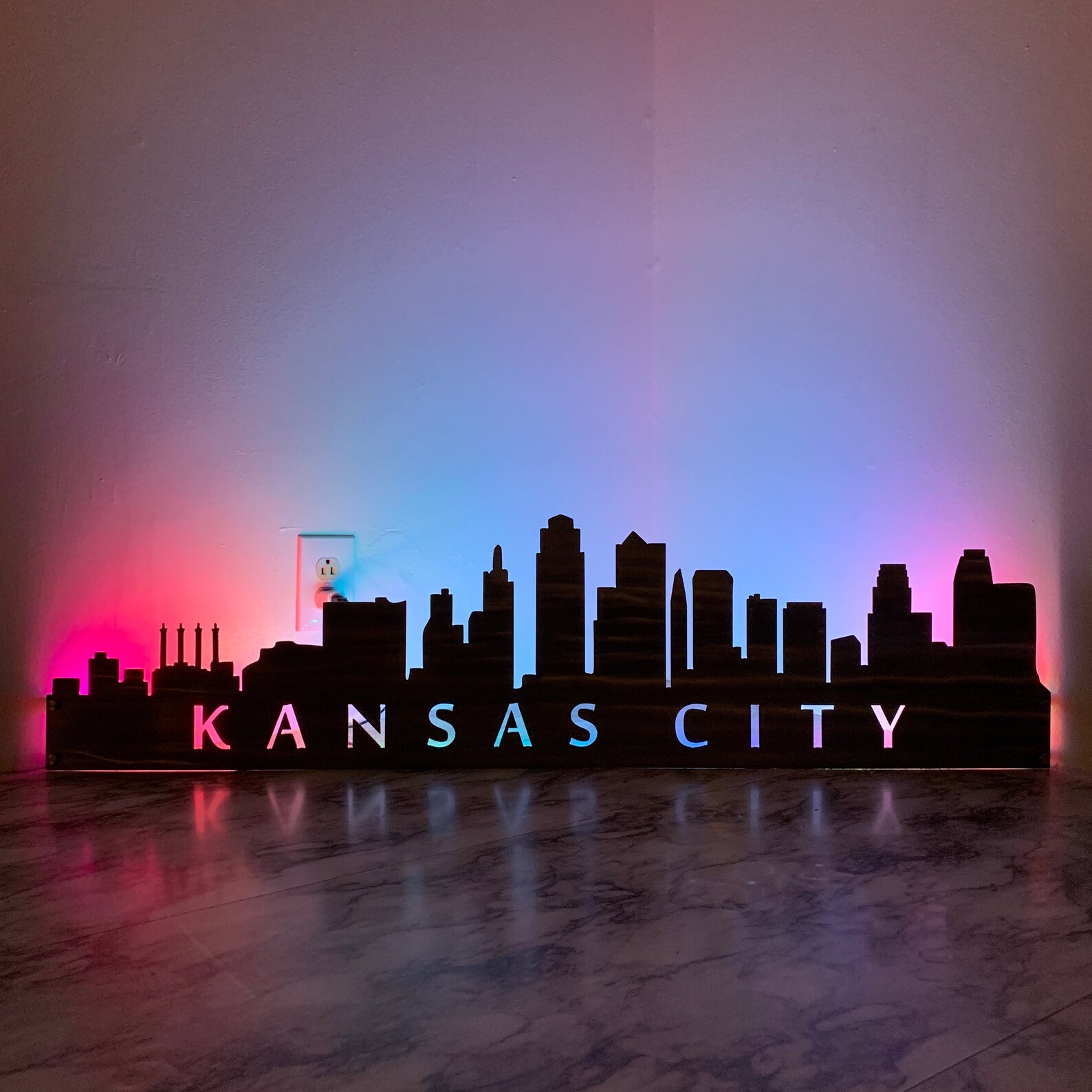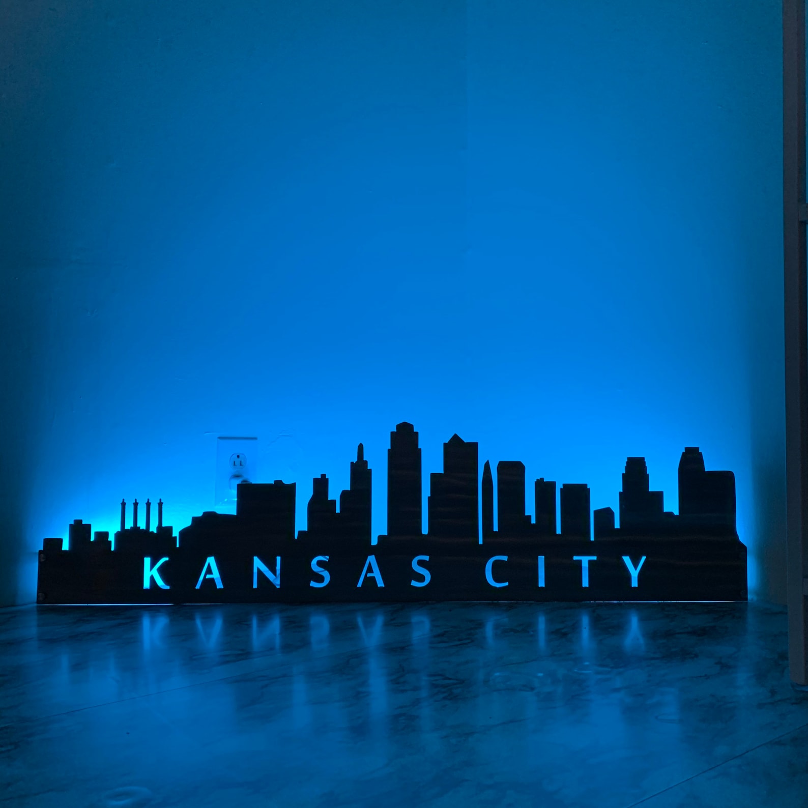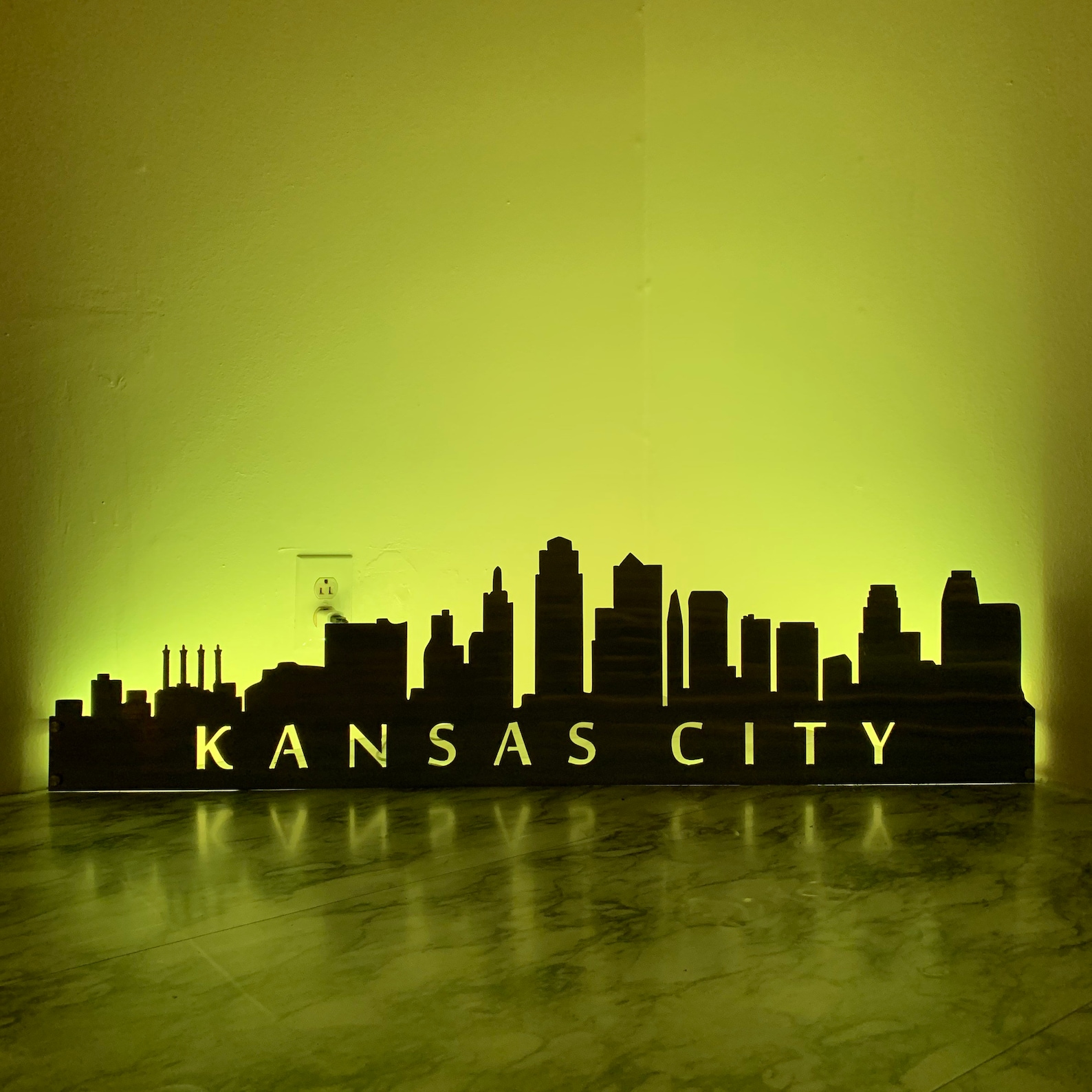 City Skyline Metal Wall Art with LED and Standoffs