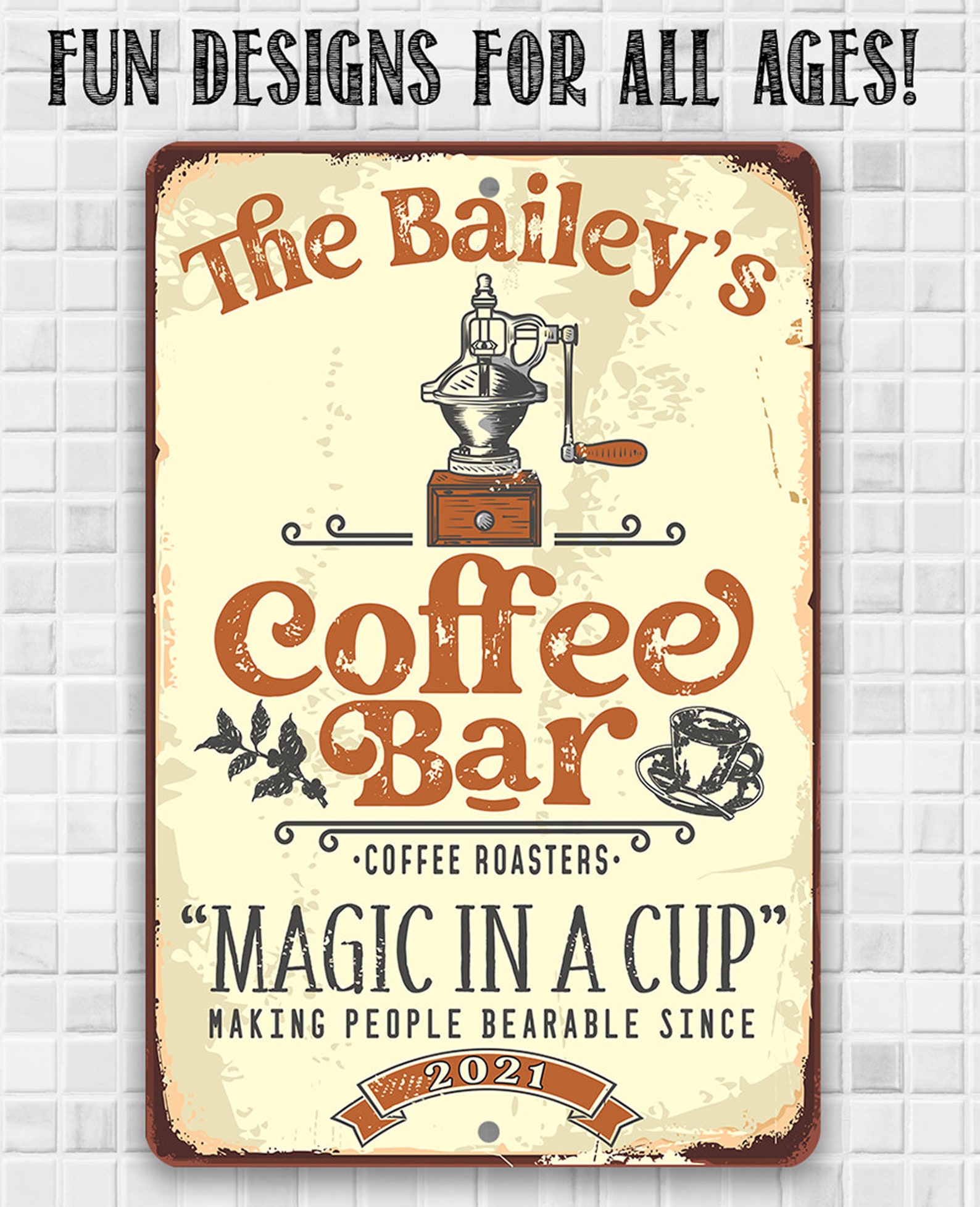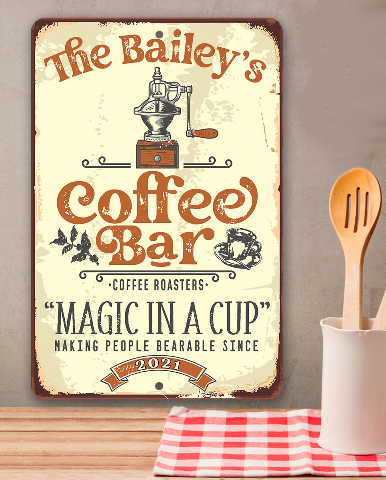 Tin – Personalized Coffee Bar Magic In A Cup Metal Sign – 8" x 12" or 12" x 18" Use Indoor/Outdoor – Coffee Shop Decor