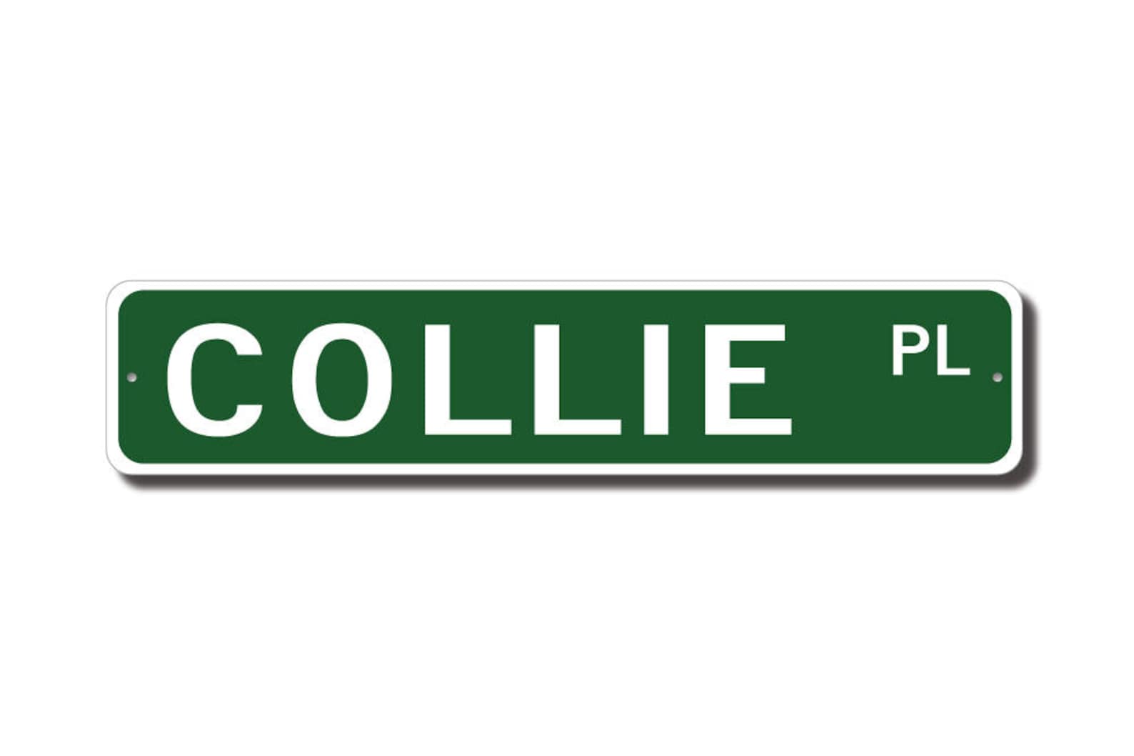 Collie Lovers, check out this awesome street sign! This will make the perfect piece for any Collie lover or Collie cave. Made of premium aluminum it will stand the test of time. This sign will look great in any room, garage, barn or office! Get this sign for your favorite friend that loves a Collie !