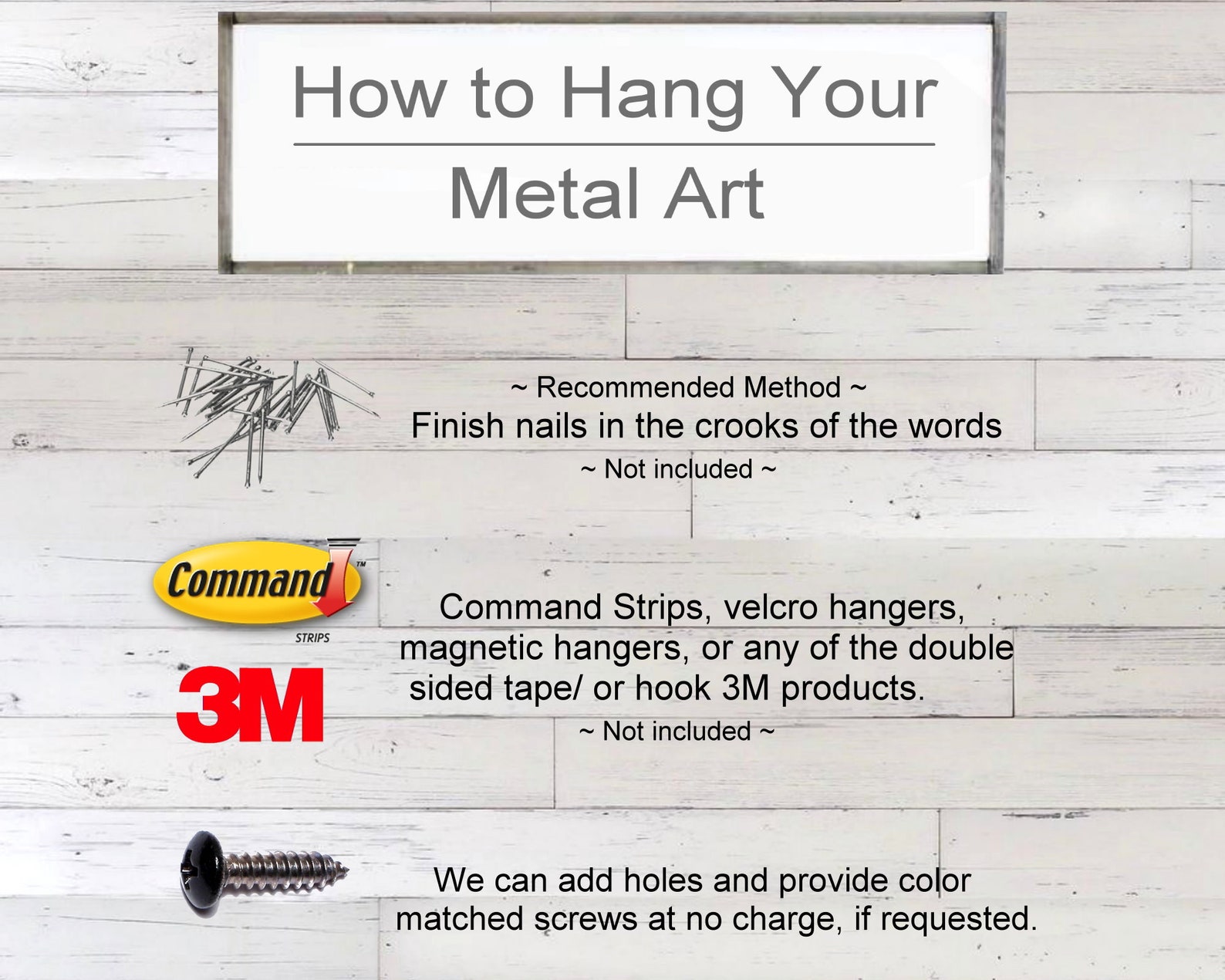 ~ This piece comes standard without holes or hardware and can be hung at your discretion with finish nails, magnetic hangers, Velcro hangers, or any 3m products like double sided tape command strips etc.