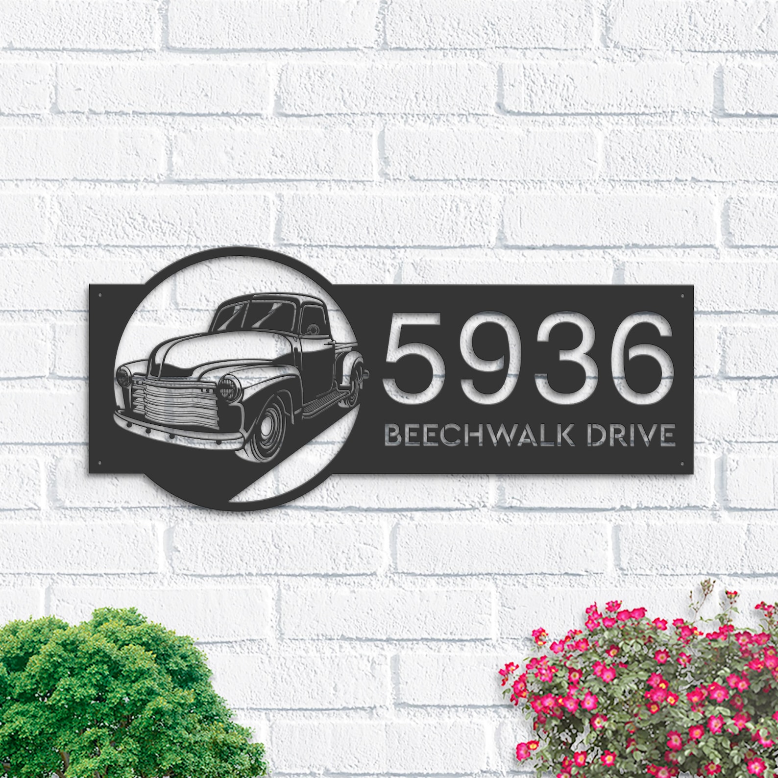 Contemporary Metal House Number with Address