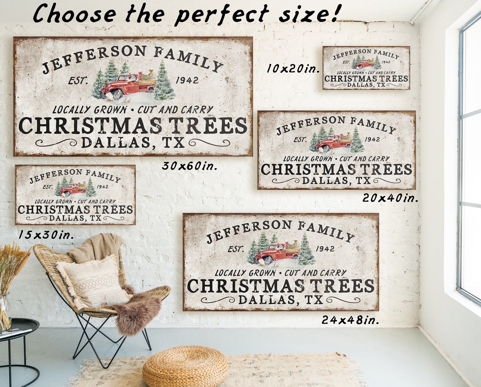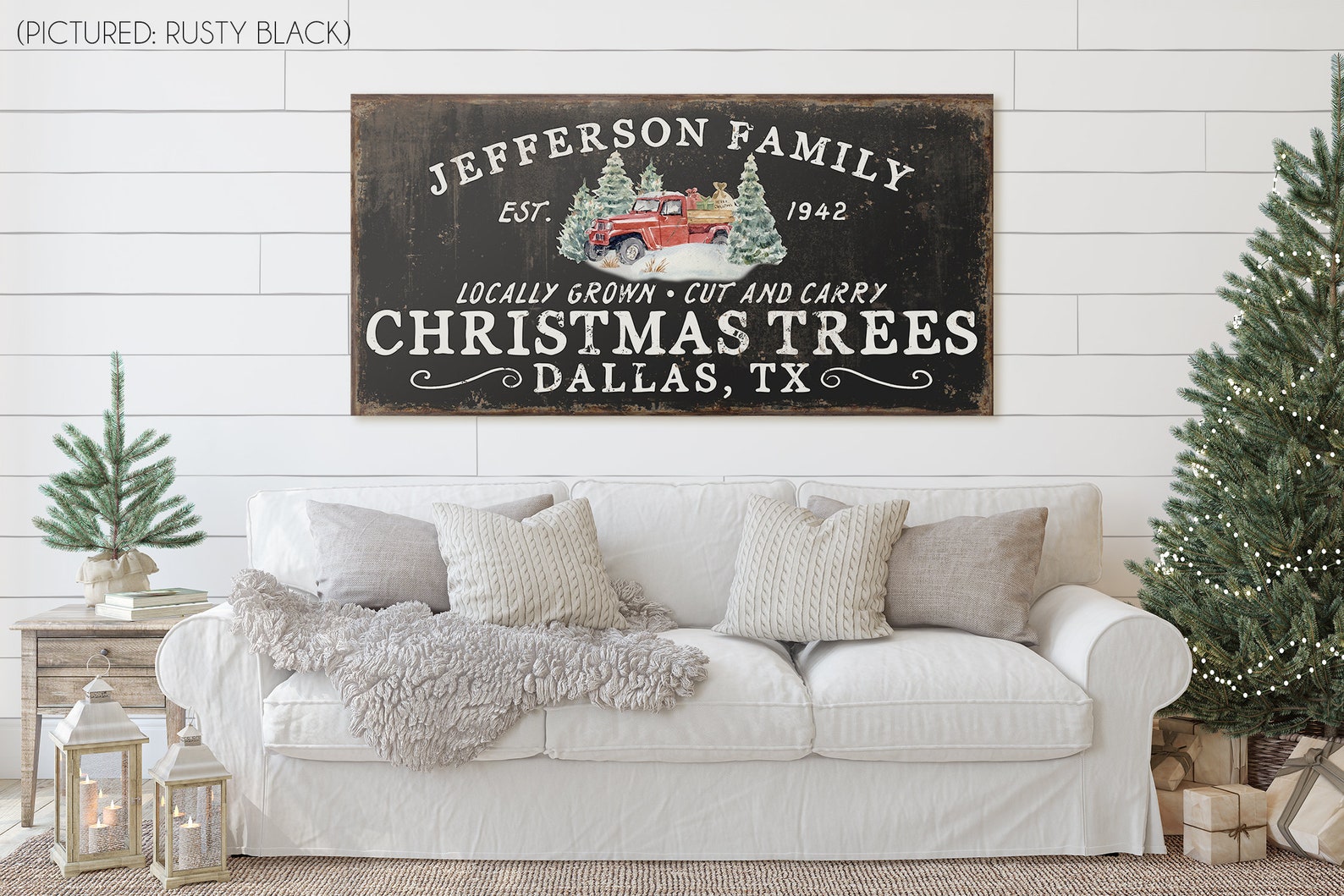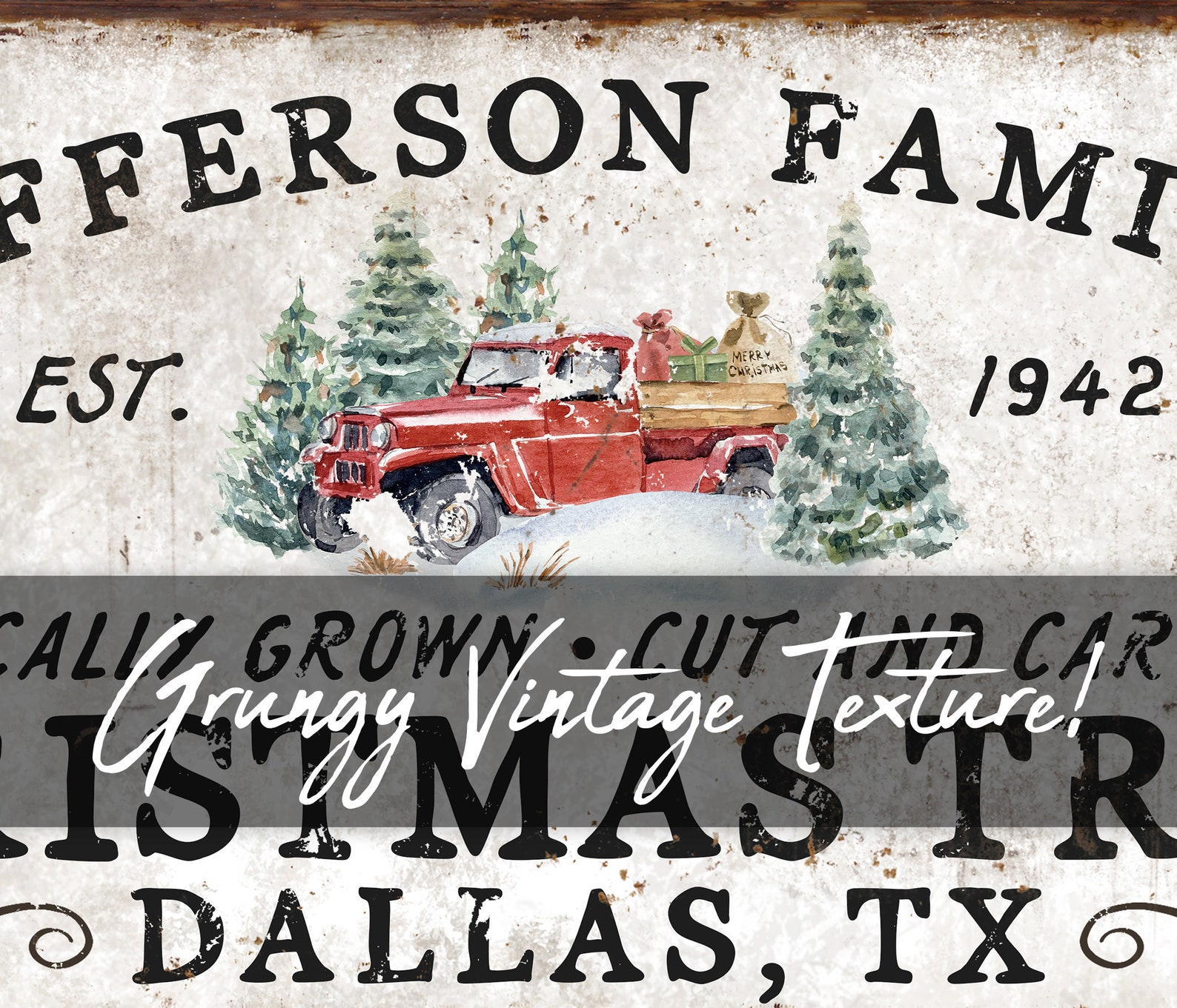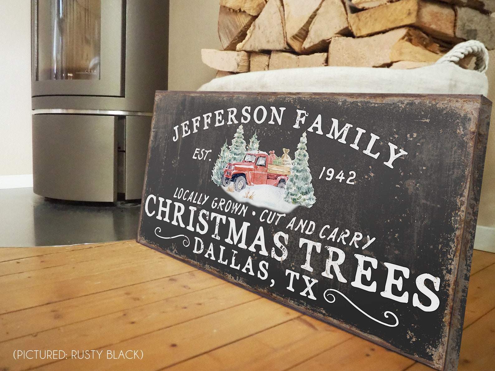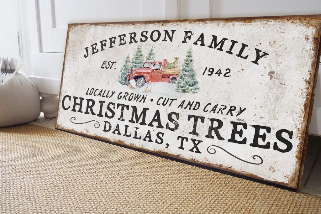 Personalized FamilytChristmas Tree FarmtSigns for FronttPorch Front DoortHoliday Decor CustomtFarmhouse ChristmastRed Truck Wall ArttRustic Christmastold rusty Decortvintage chippytold antiquetfamily name signtmetal canvas wood