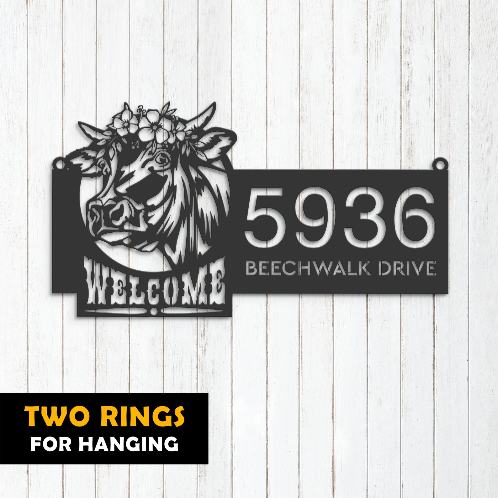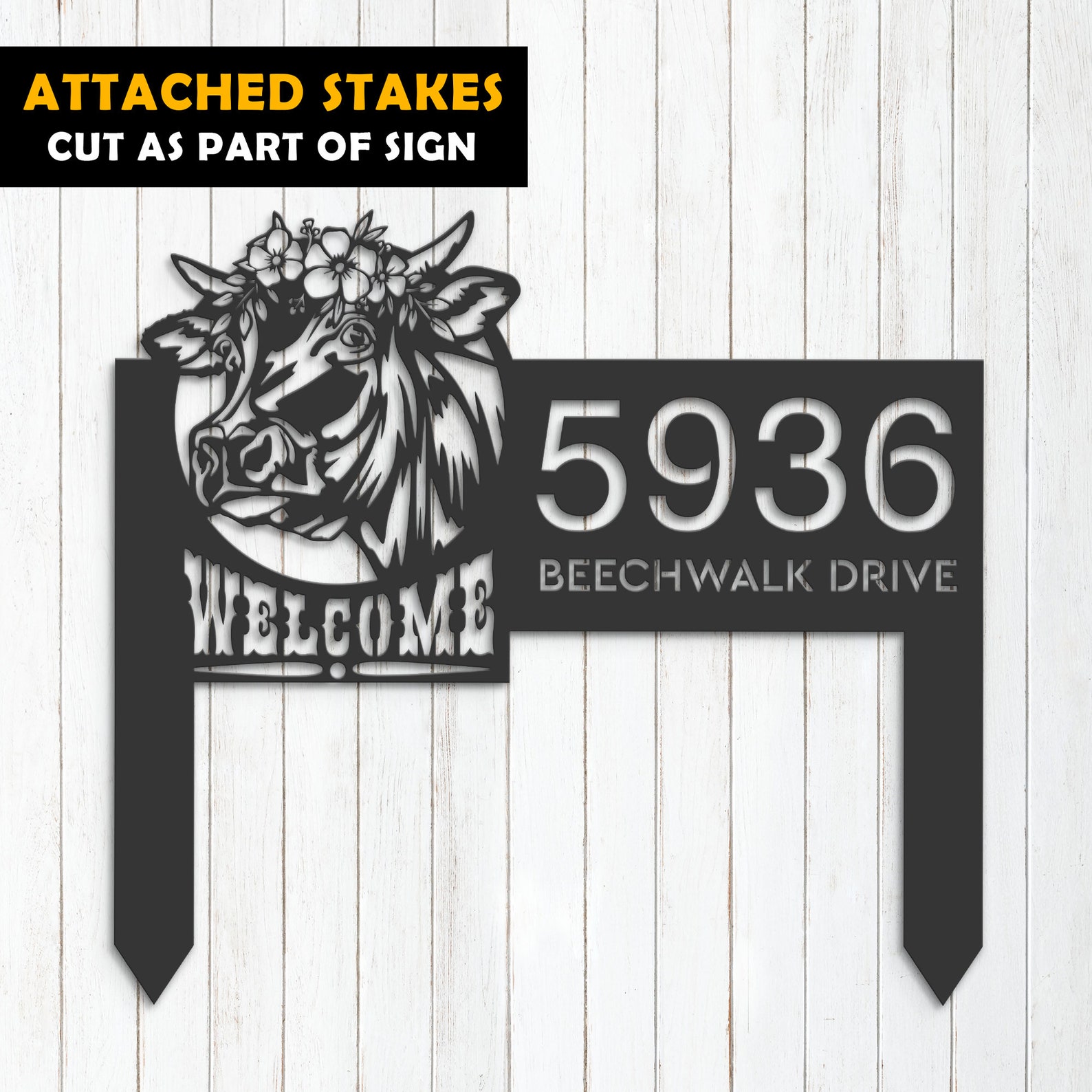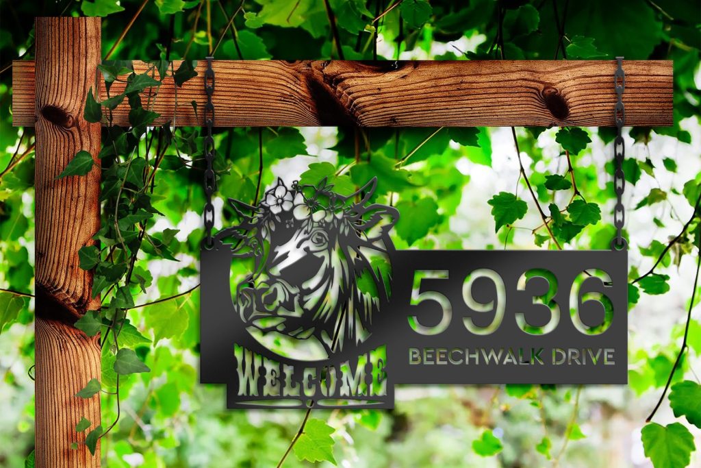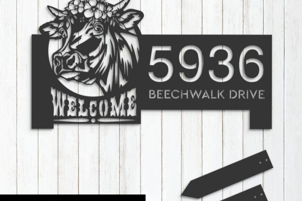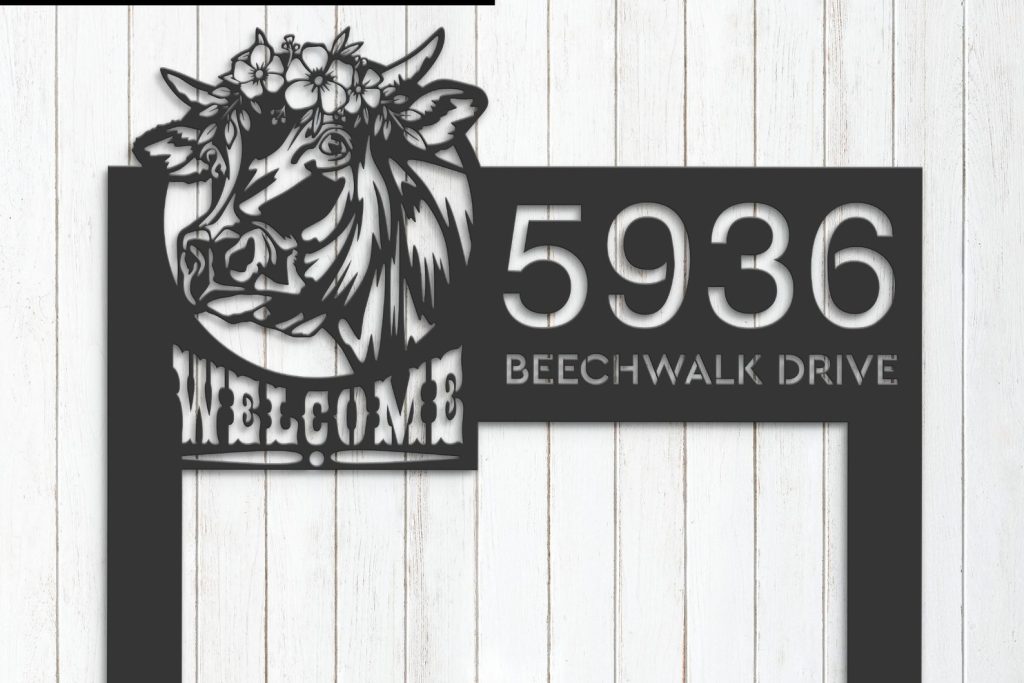 Cow Farm Welcome Metal Address Sign for Yard