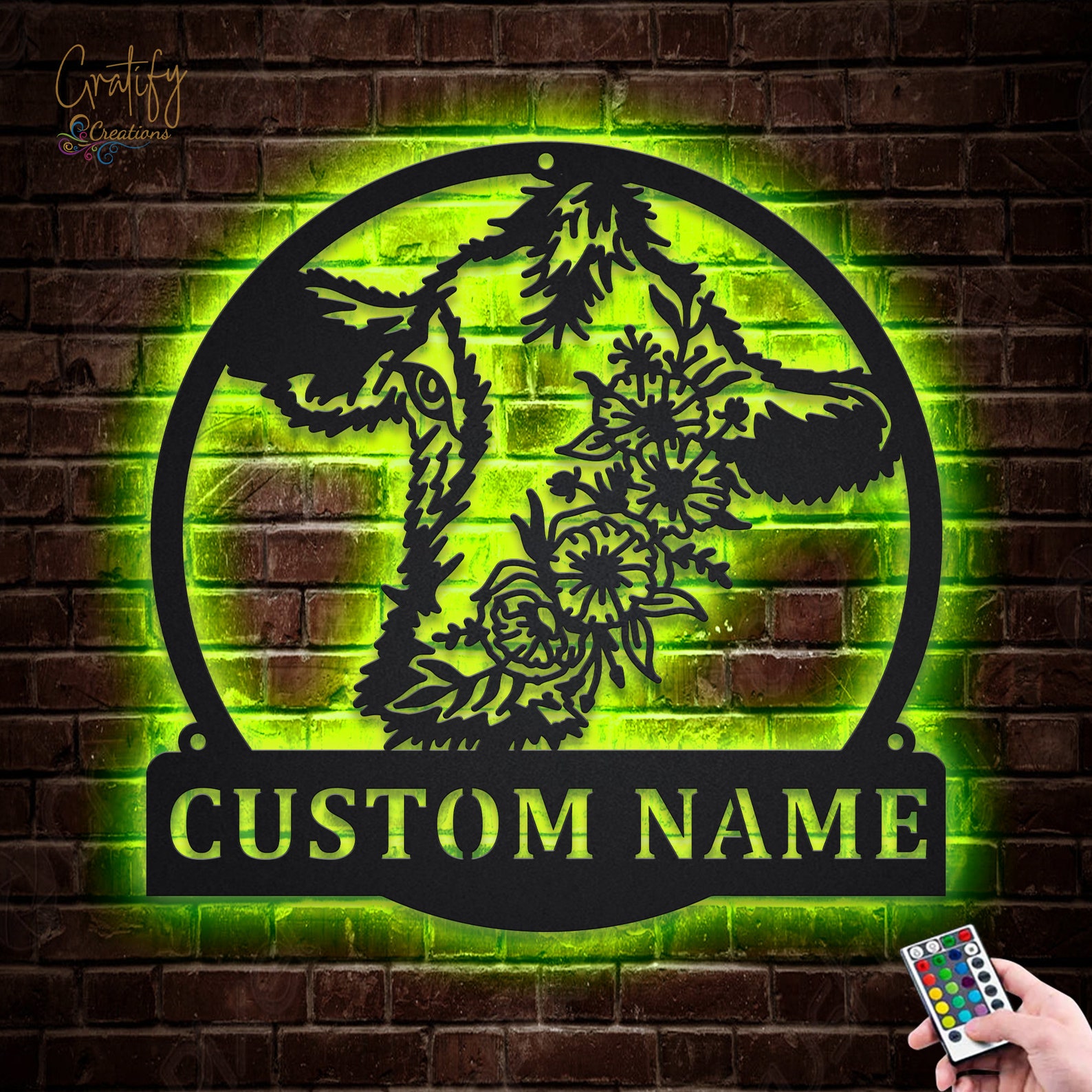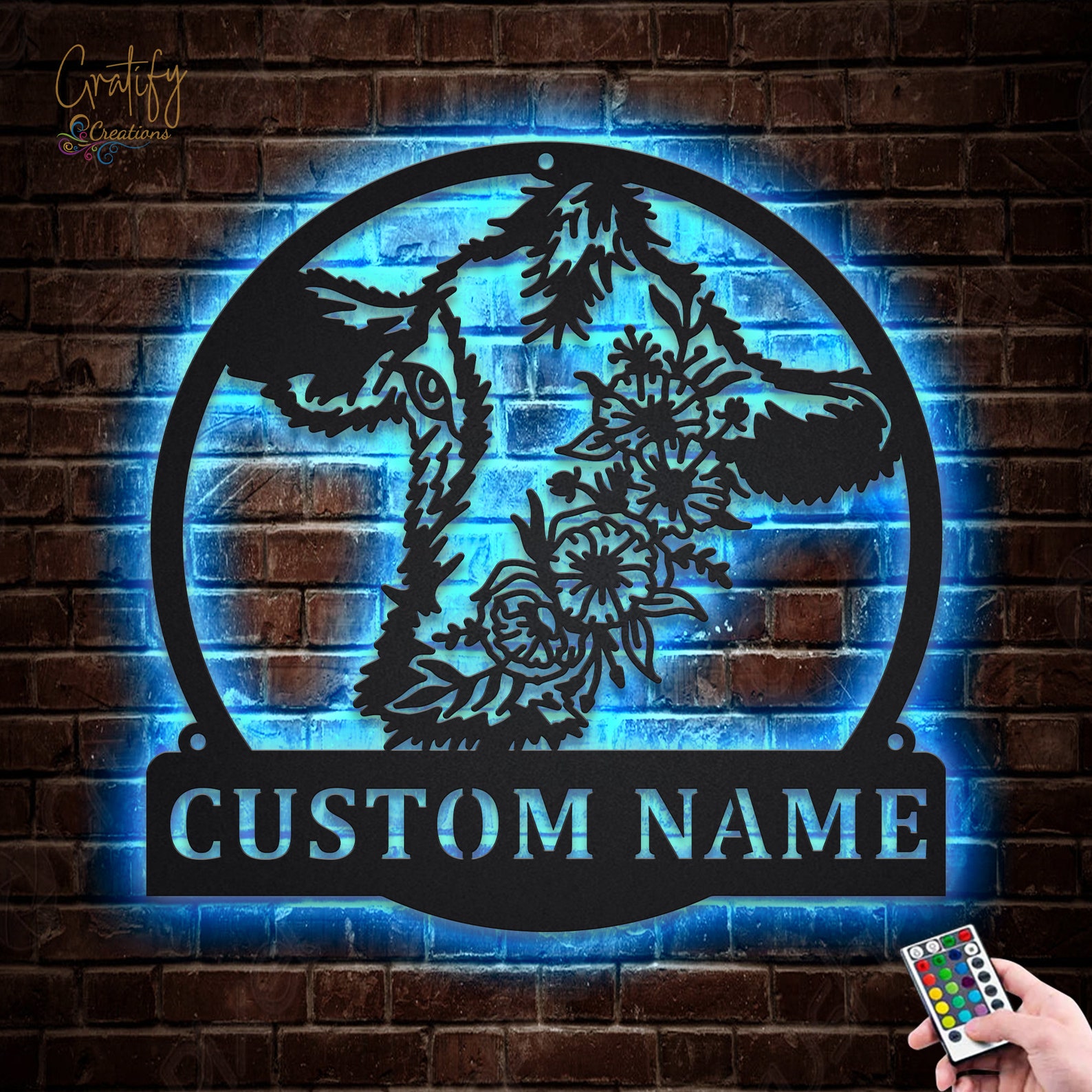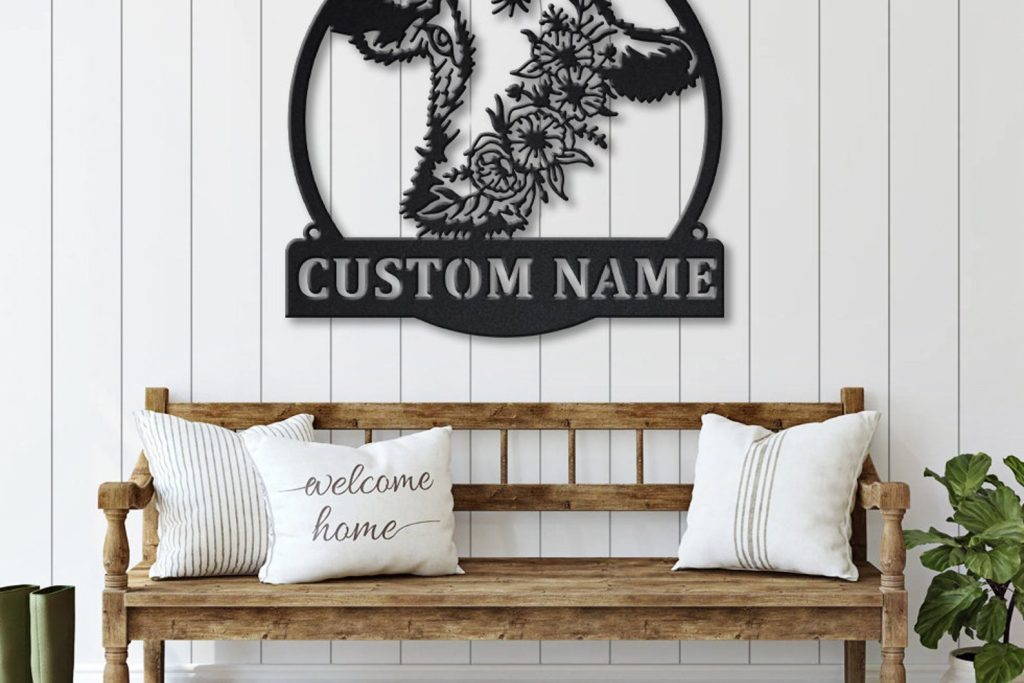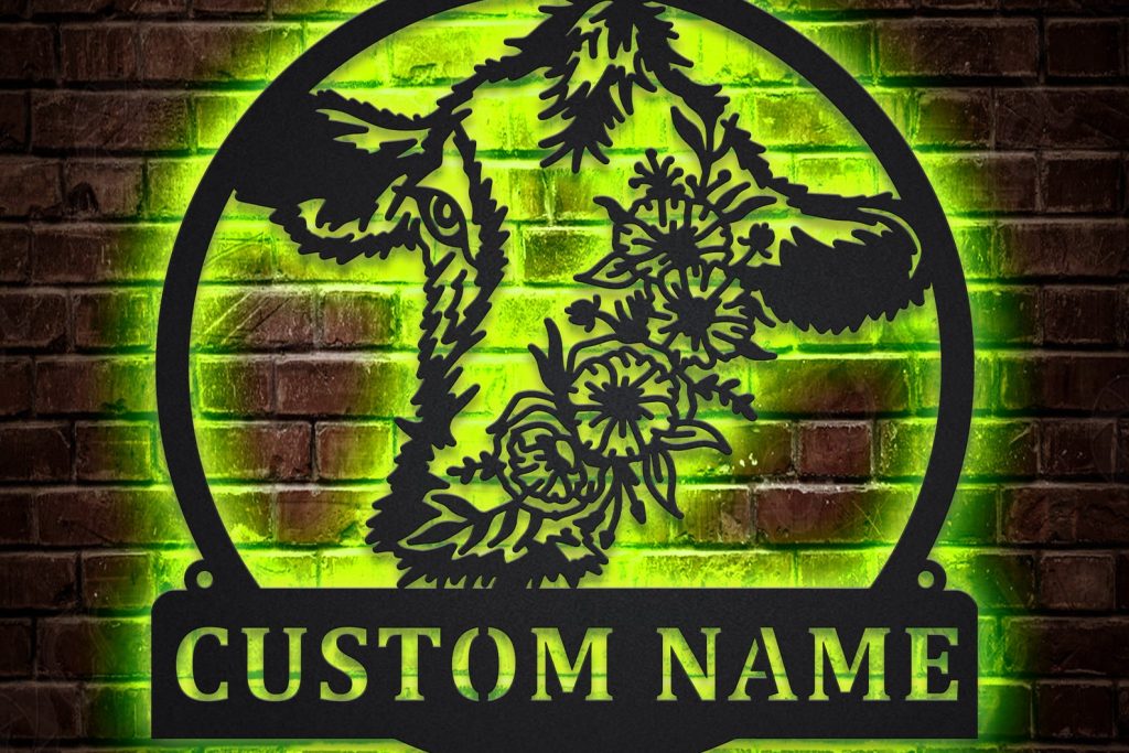 Cow with Flowers Metal Sign with LED – Farm Decor