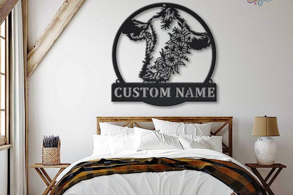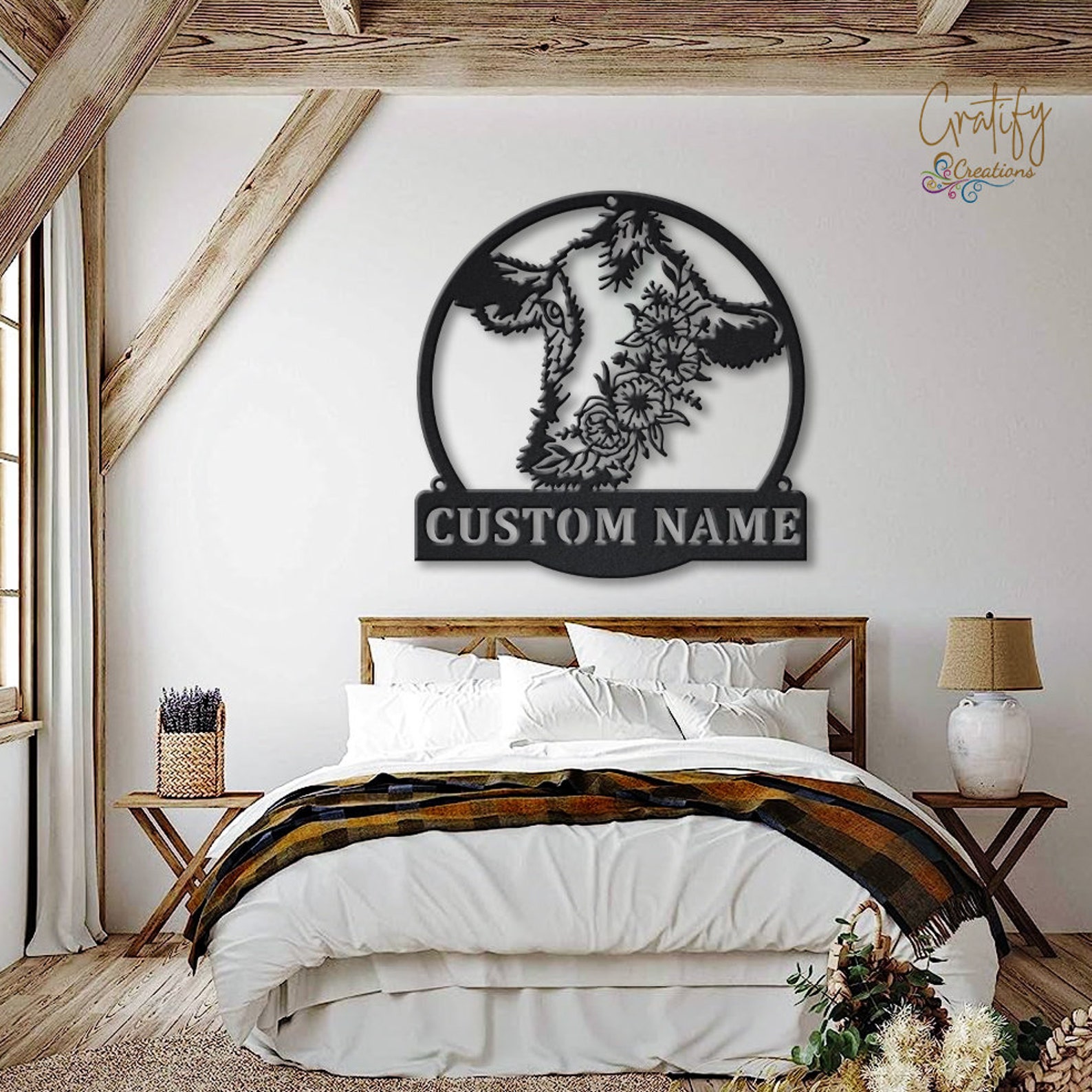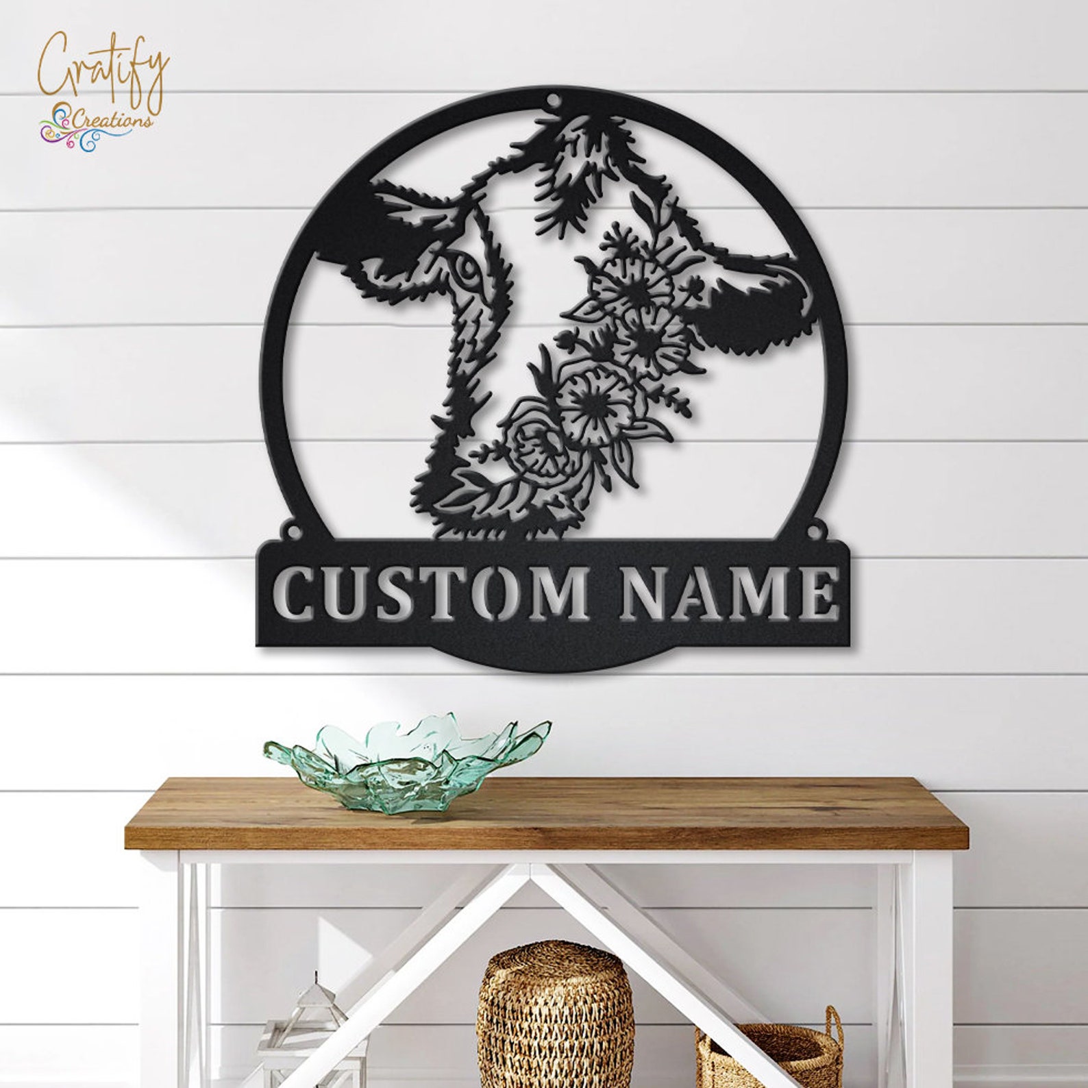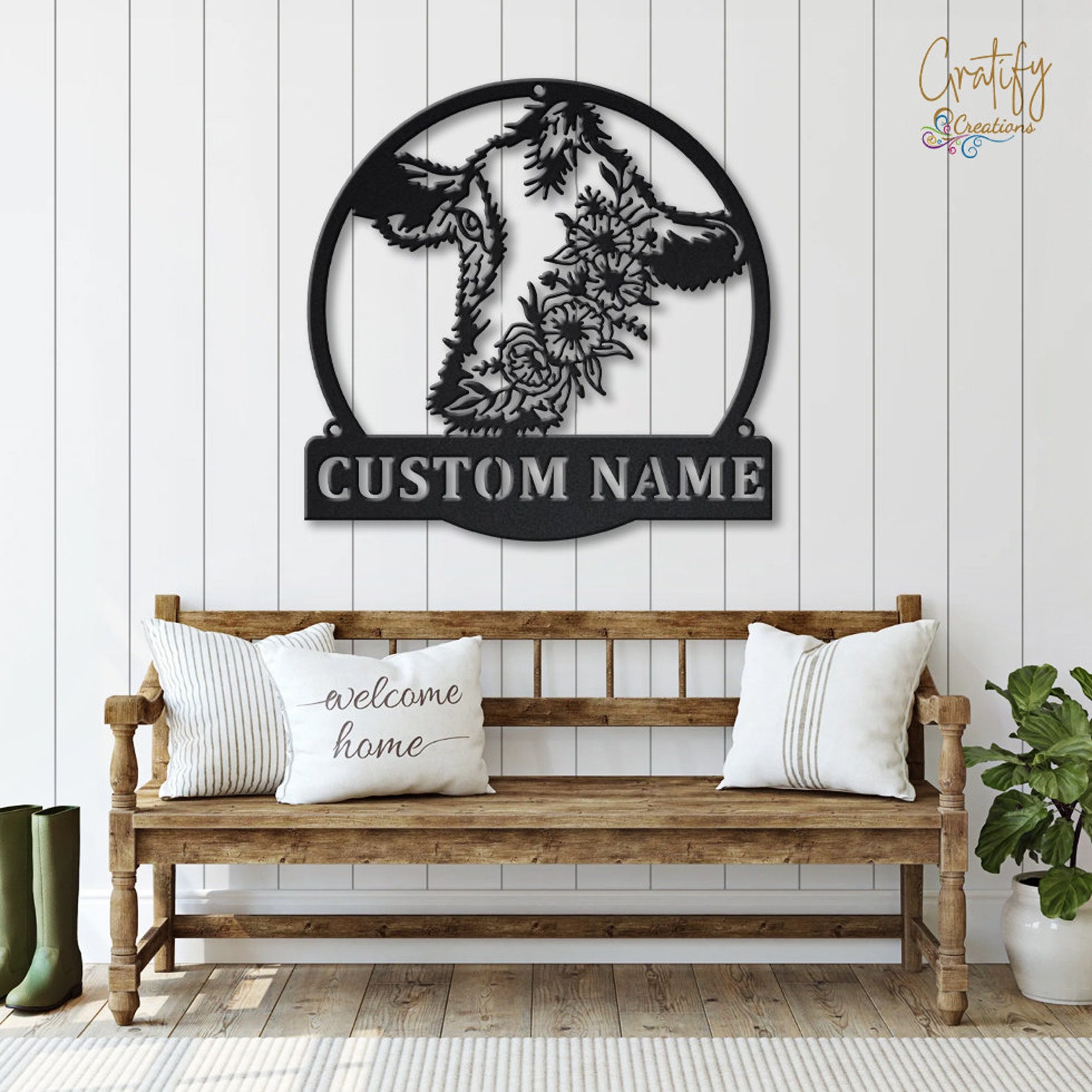 Cow with Flowers Metal Sign with LED – Farm Decor