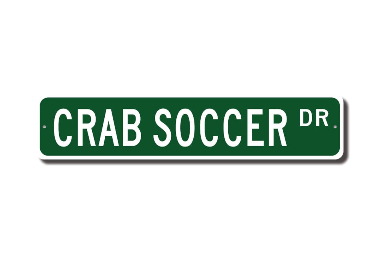 Crab Soccer lovers check out this awesome street sign! This will make the perfect piece for any Crab Soccer fan, or maybe you are a Crab Soccer lover looking for a cool decor piece ! Made of premium aluminum it will stand the test of time. This sign will look great in any room, home den, cave, or office ! Get this sign for your favorite Crab Soccer aficionado !