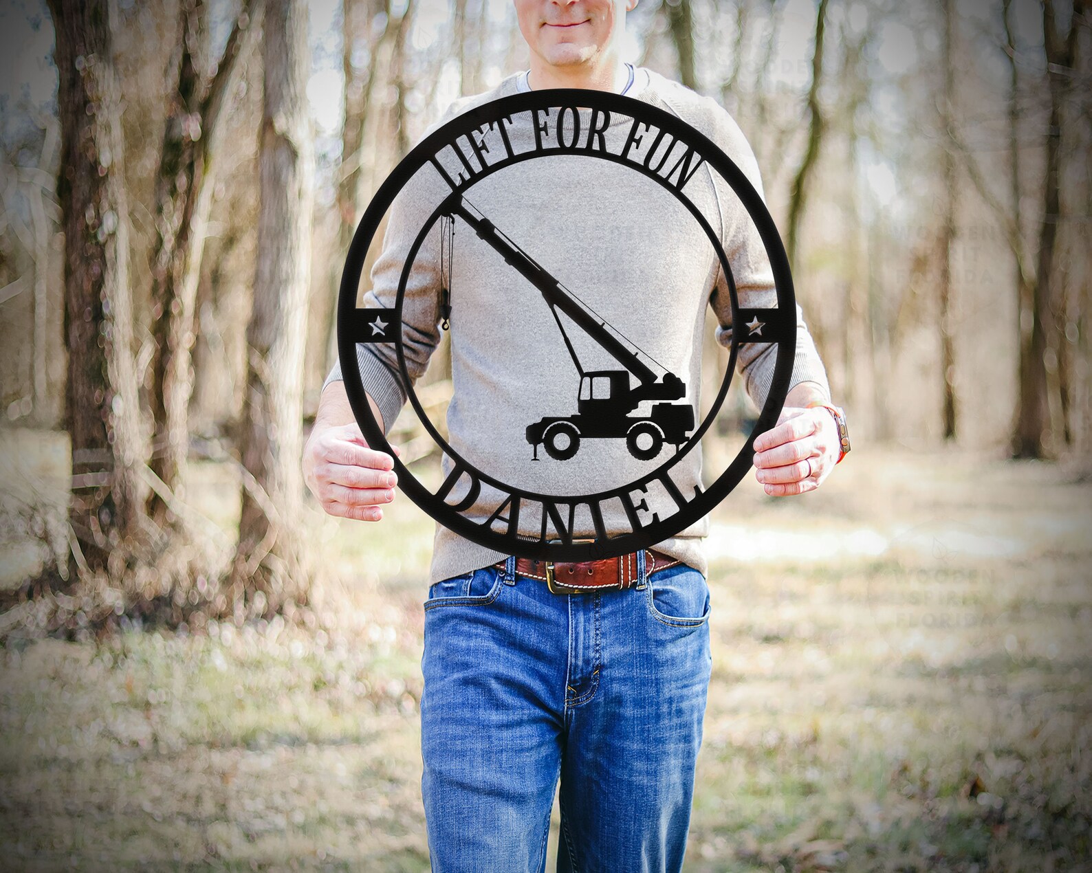 Crane Construction Art – Personalized Metal Sign, Custom Name Decor, Retirement Gift