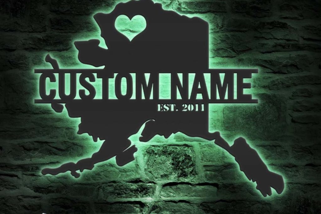 Be the first to review “Custom Alaska Map Metal Wall Art – LED Light, Personalized State Name Sign”