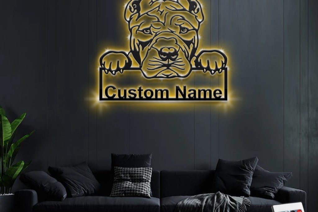 Be the first to review “Custom American Bully Metal Wall Art with LED & Name”