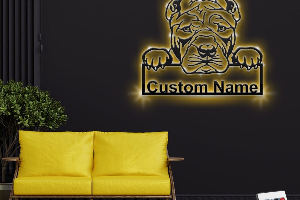 Custom American Bully Metal Wall Art with LED & Name