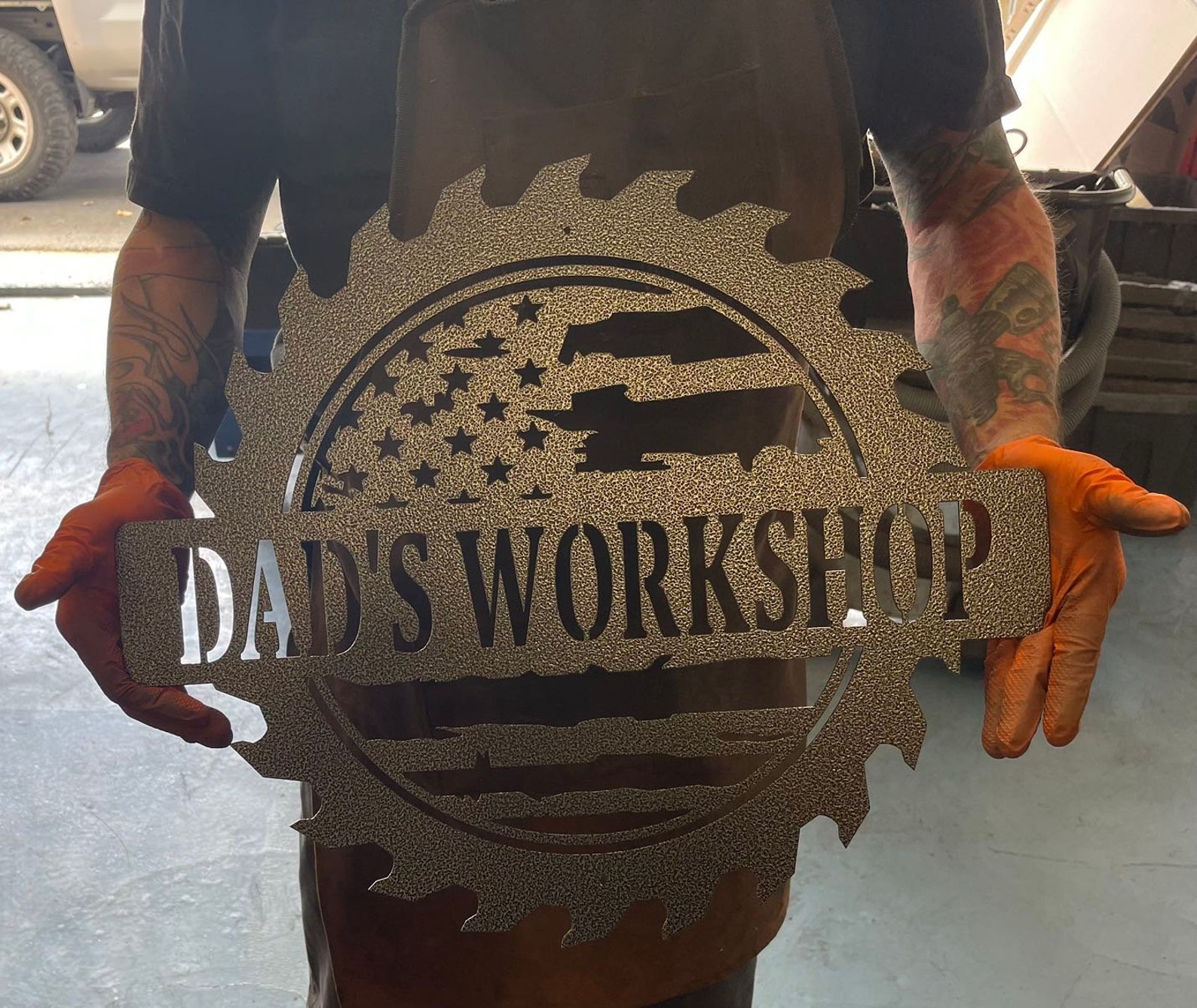 Custom American Flag Metal Workshop Sign