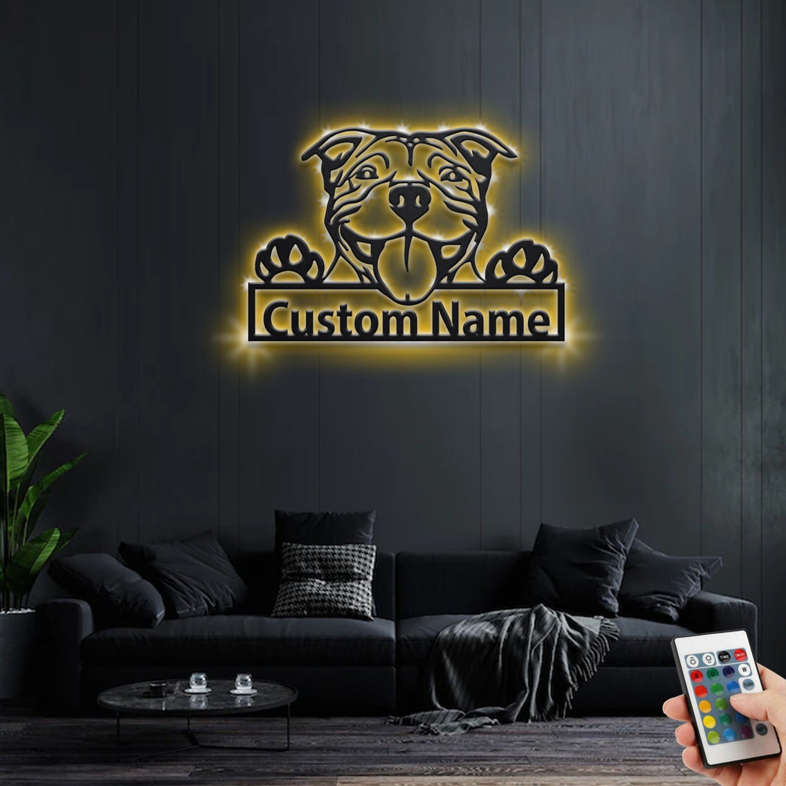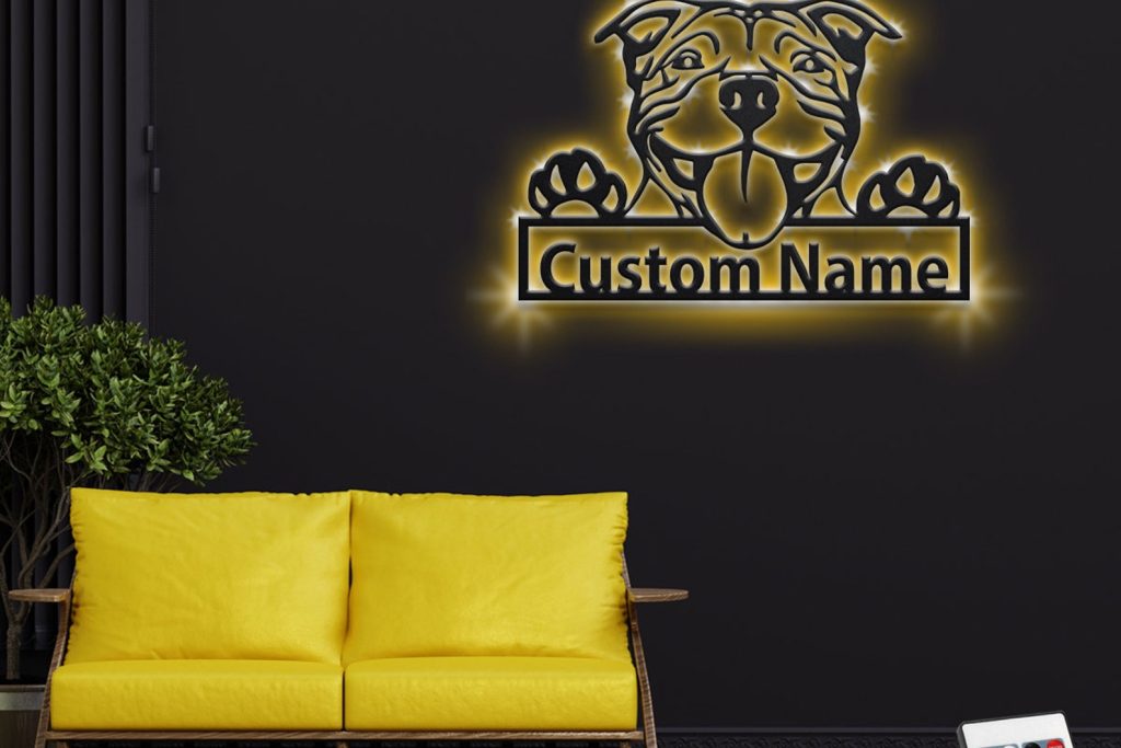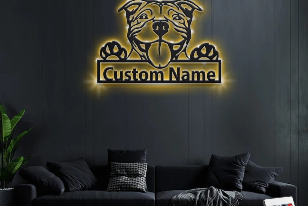 Custom American Pit Bull Metal Sign with LED – Dog Room Decor
