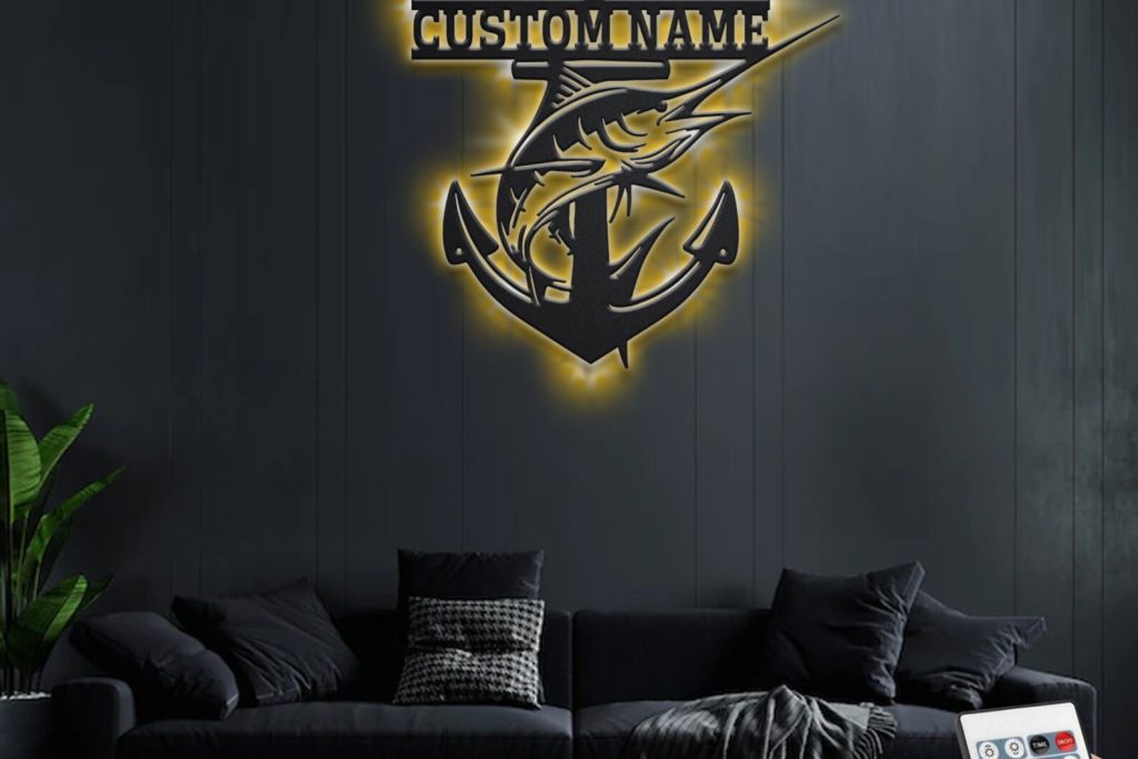 Custom Anchor Swordfish Metal Sign with LED – Room Decor