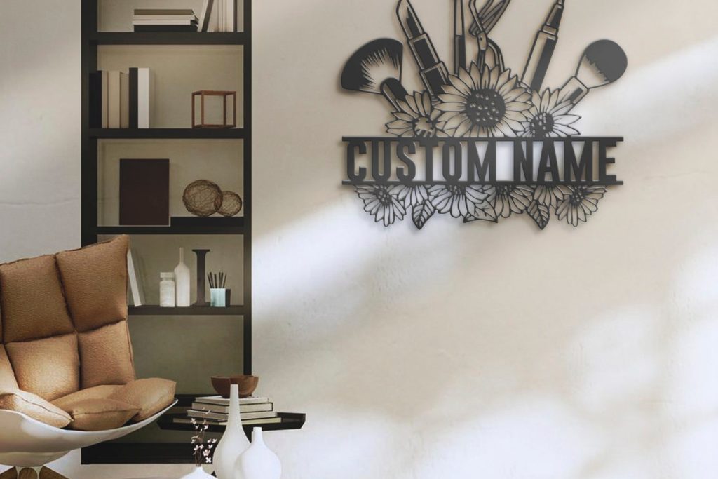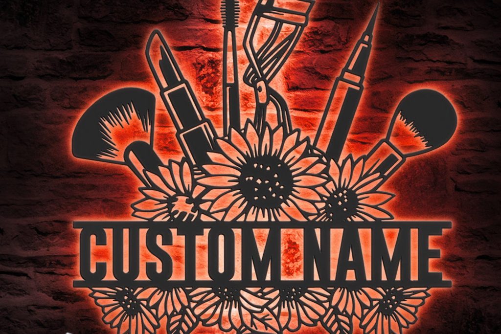 Custom Artist Makeup Tool Metal Wall Art with LED