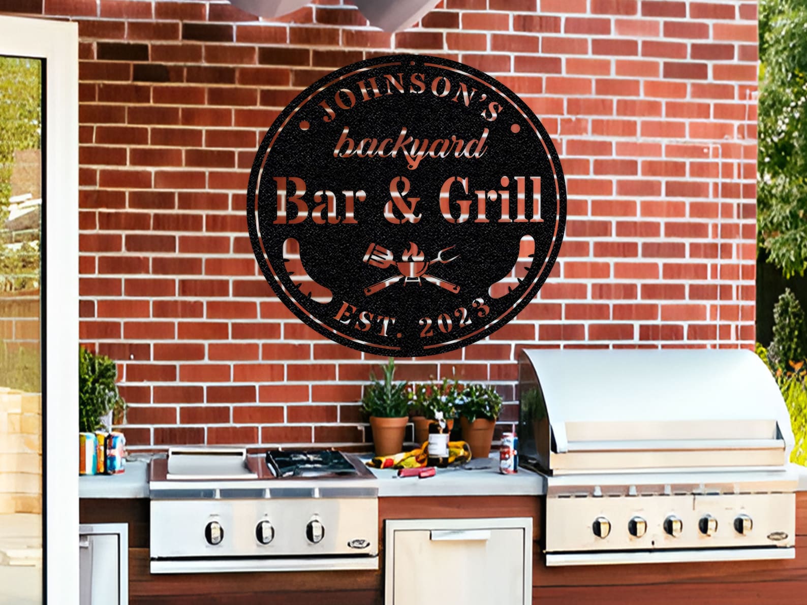Custom Bar And Grill Metal Wall Art,BBQ Metal Wall Art,Bar Grill Sign,Personalized Sign,Bar Decor,Man Cave Sign,Family Gift Signs,Home Decor,Grill Gifts for Dad,Fathers Day Gifts
