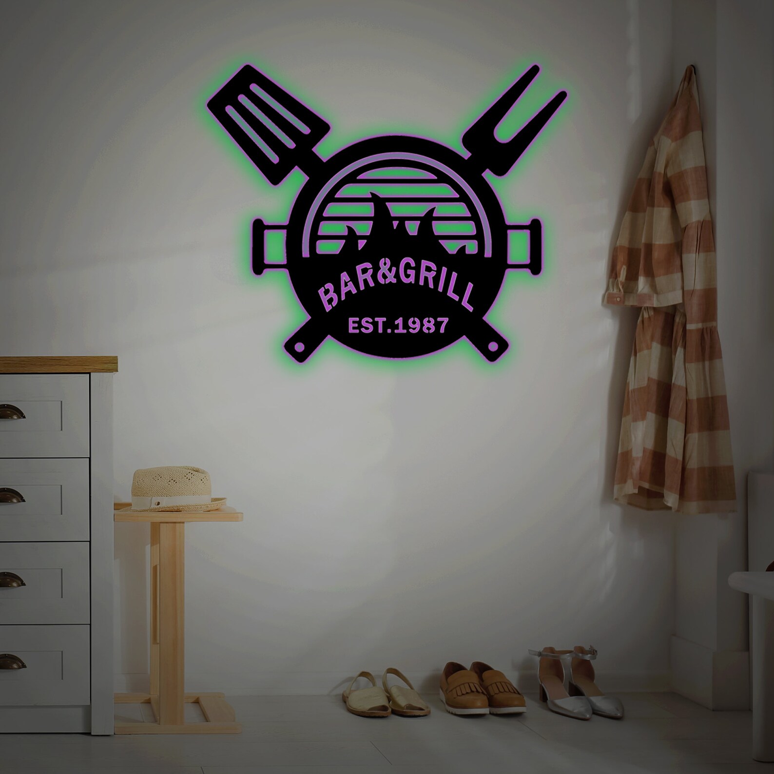 Custom Bar And Grill Metal Wall Led Signs-BBQ Metal Wall Art-Bar Sign-Personalized Sign-Bar Decor-Man Cave Sign-Family Gift Signs-Home Decor