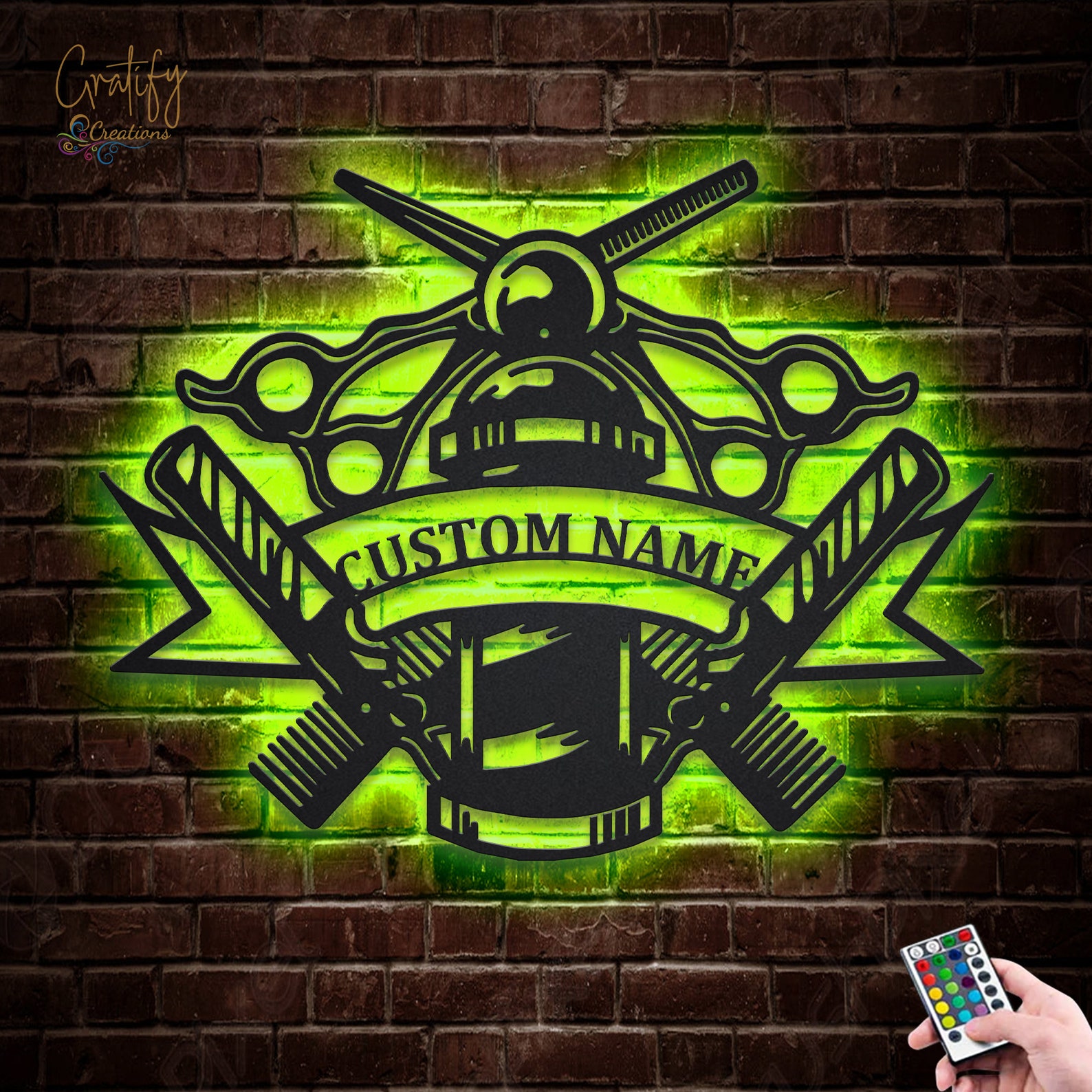 Be the first to review “Custom Barber Shop Metal Sign with LED Lights V2”