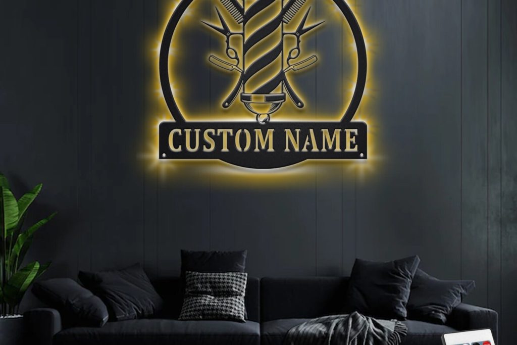 Custom Barbershop Metal Art with LED, Personalized Sign