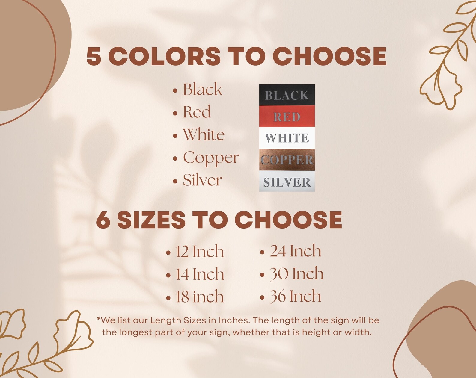Sizes Available. All measurements are in inches. Width x Height