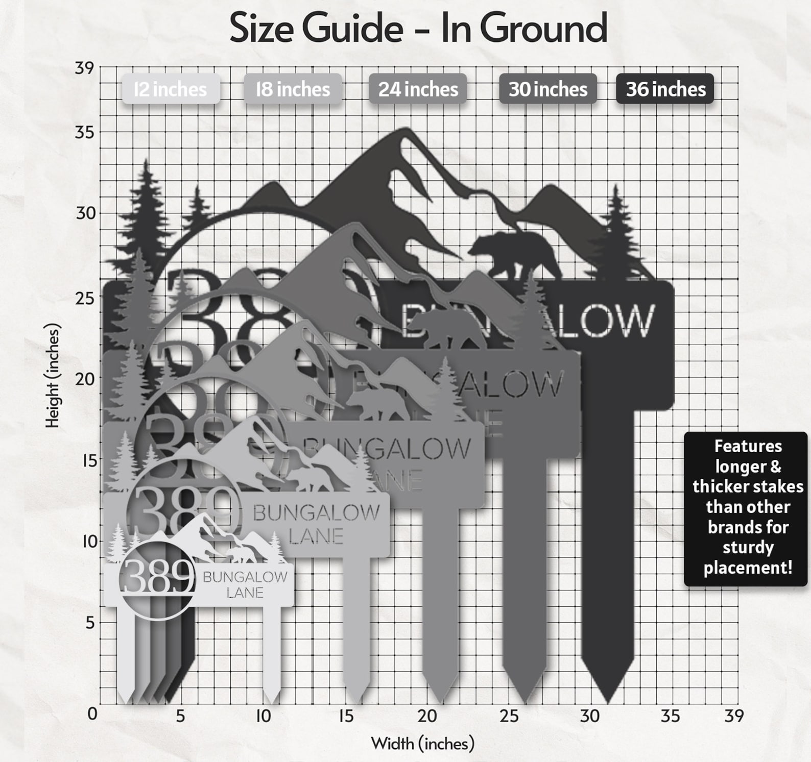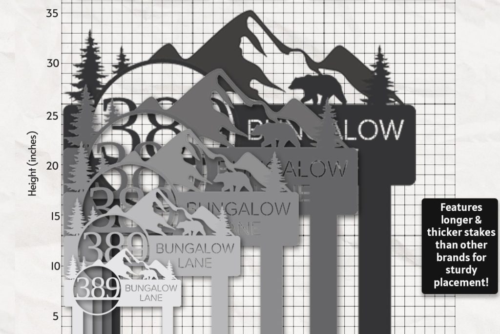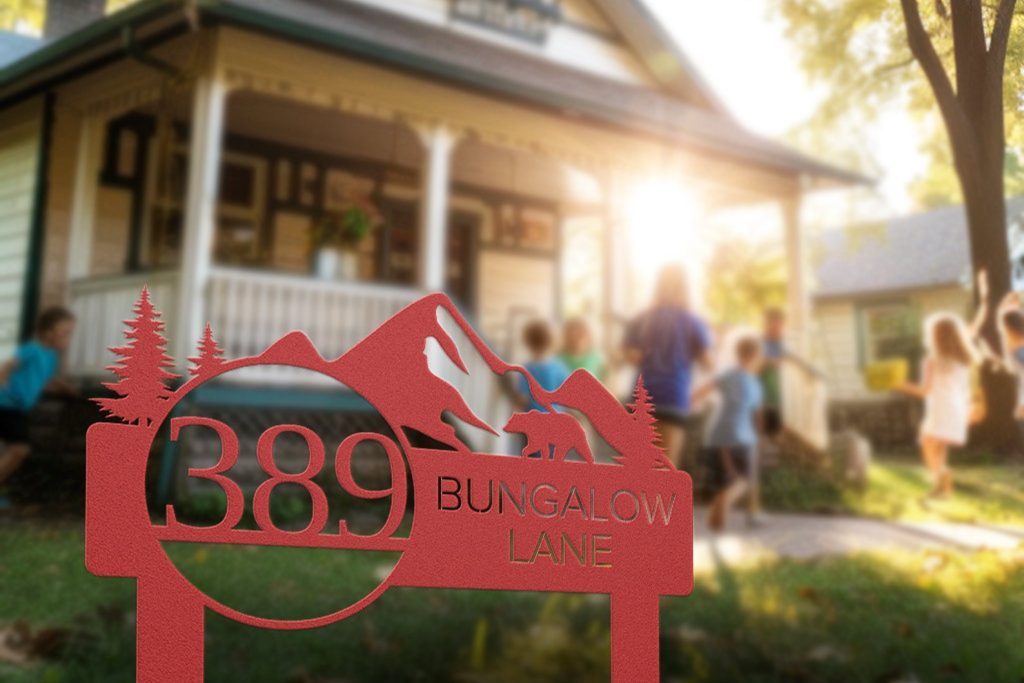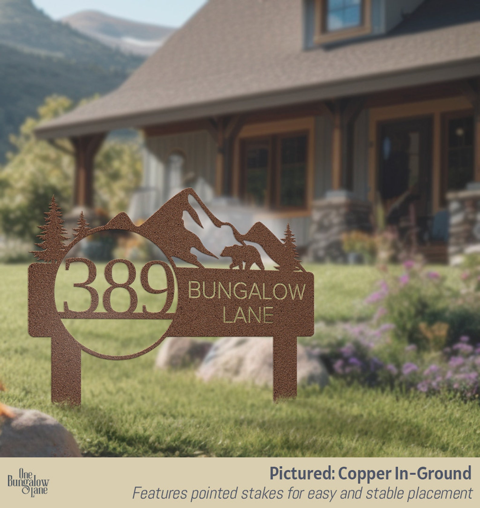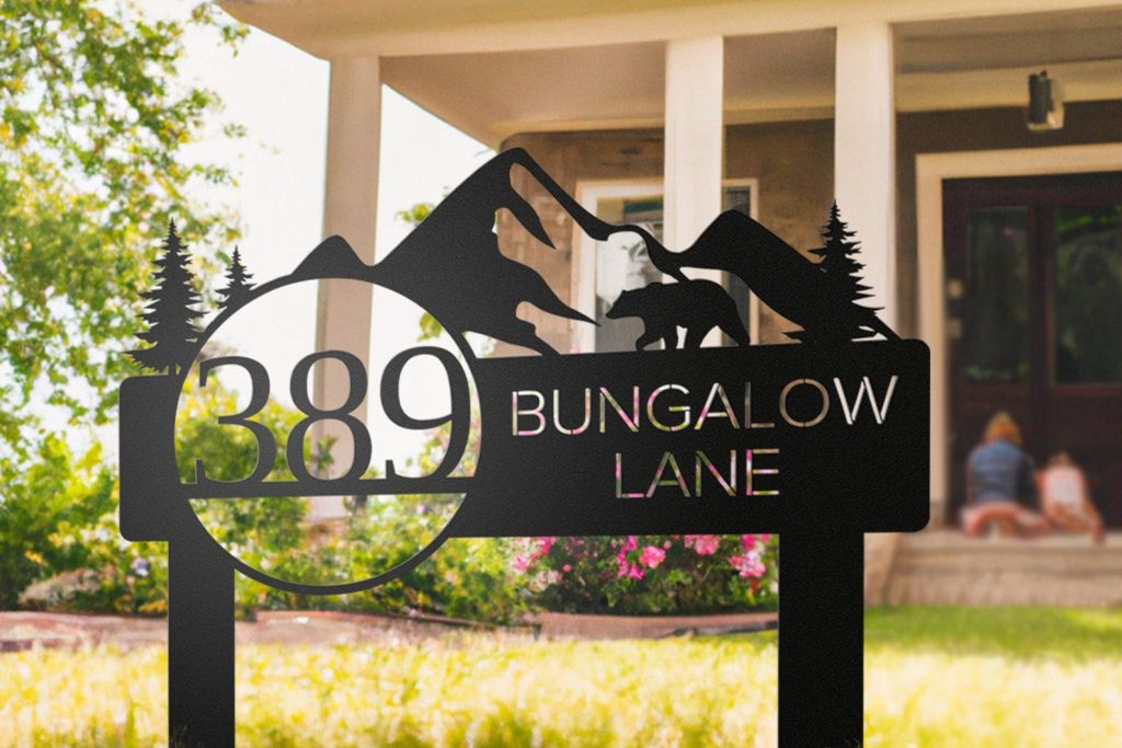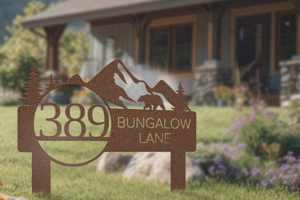 Elevate your outdoor space with our exquisite steel lawn address signs, seamlessly blending nature-inspired designs with functional elegance. At One Bungalow Lane, we take pride in our craftsmanship and personalized charm. Whether displaying your address, family name, or a combination of both, our signs infuse a unique touch into your abode.