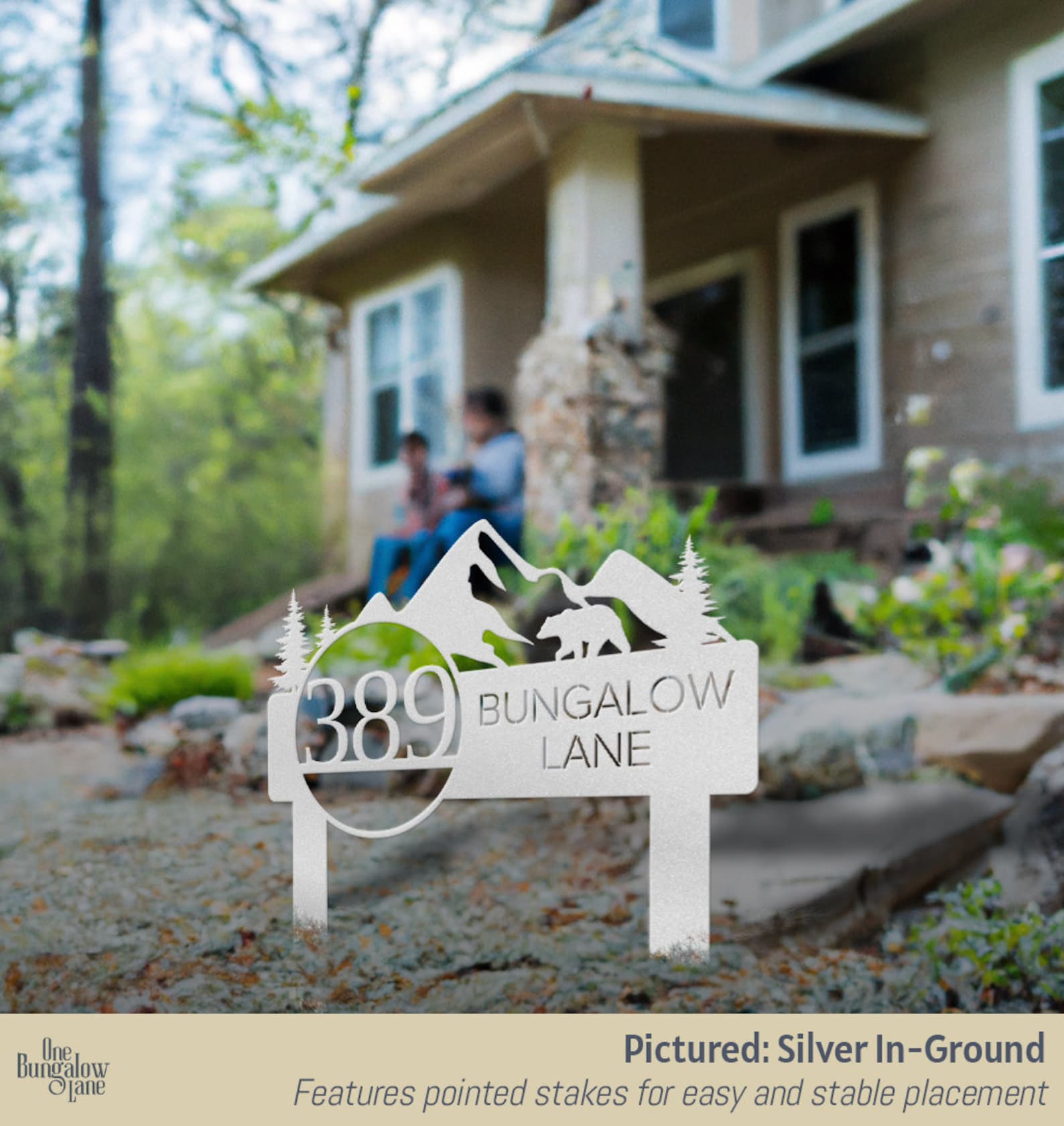 Be the first to review “Custom Bear and Mountains Metal Address Sign with Stakes”