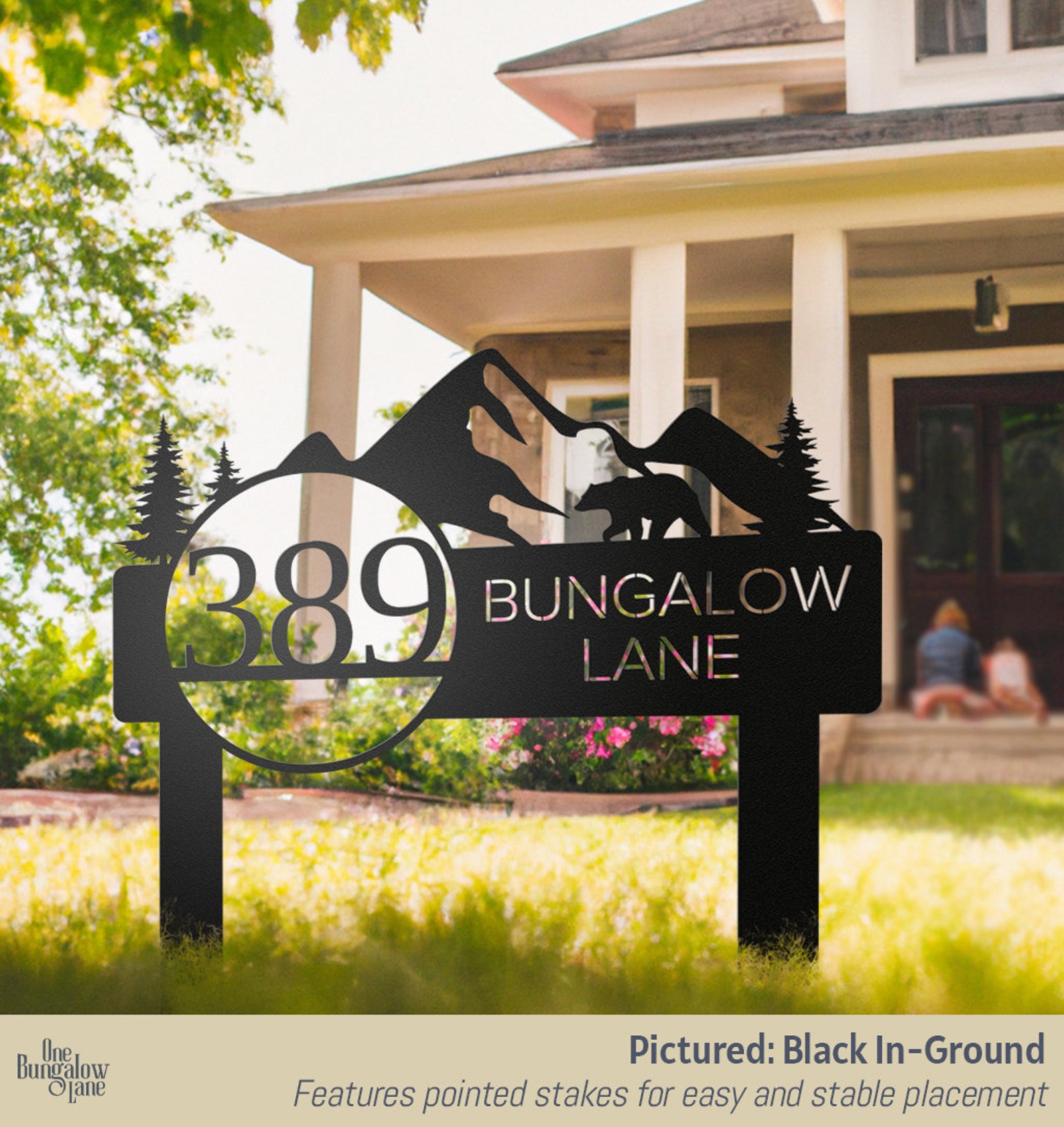 Custom Metal AddresstSign for GroundtPersonalized StreettStreet Number SigntBear MountainstLarge Black WhitetSilver Red CoppertAirBNB DecortDecor for CabintStreet Address SignstMetal Street NumberstSteel WeatherprooftRustic Yard Art
