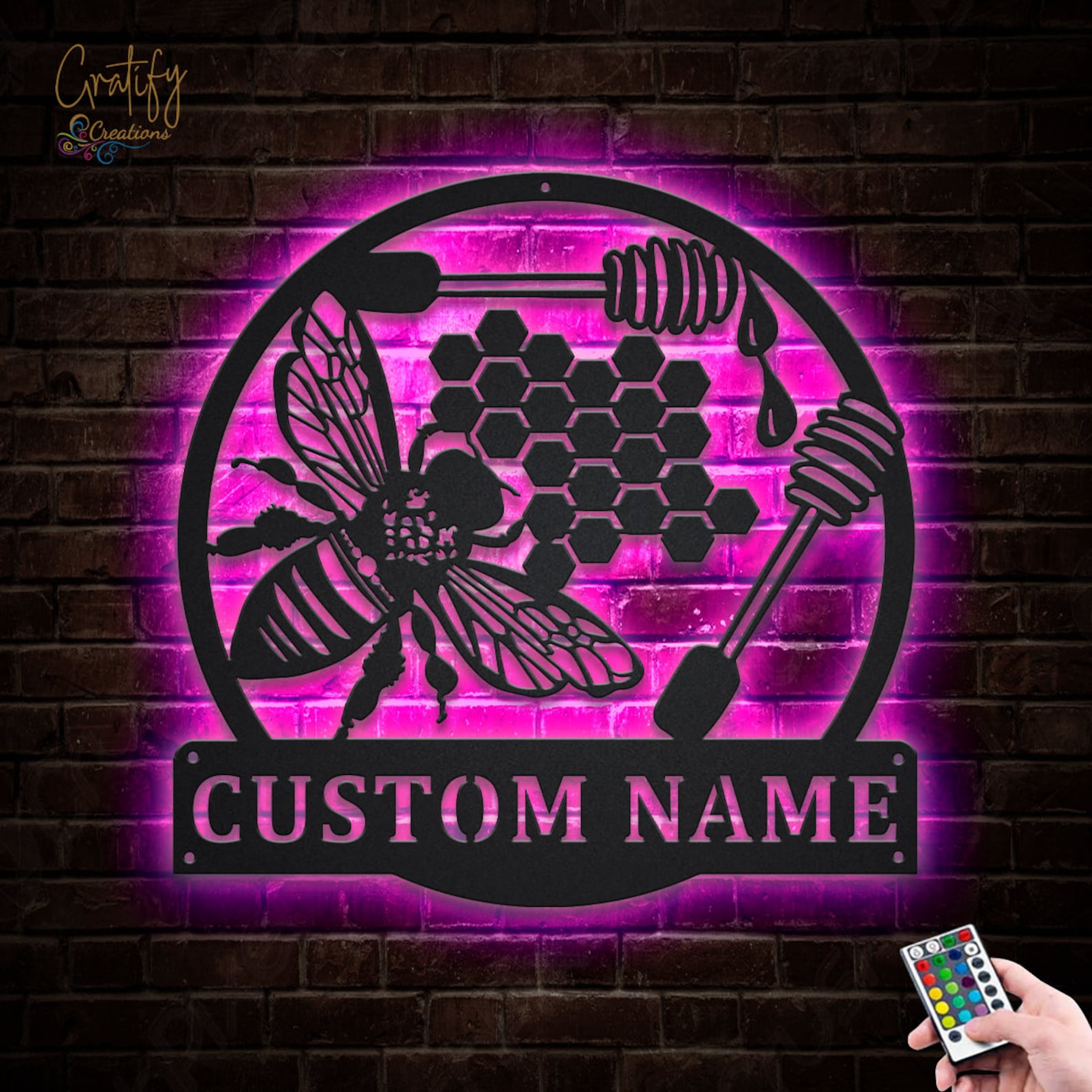 Be the first to review “Custom Bee Honeycombs Metal Art with LED Light”