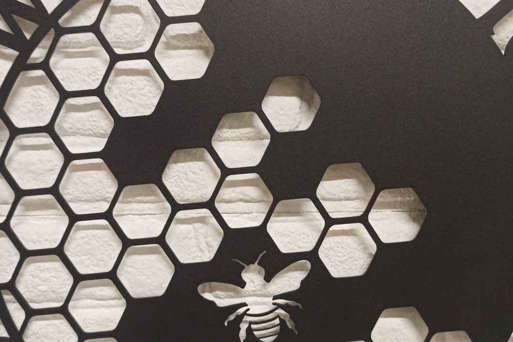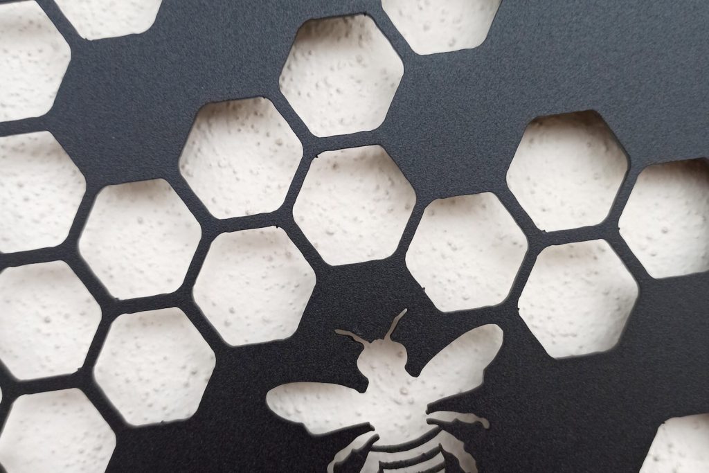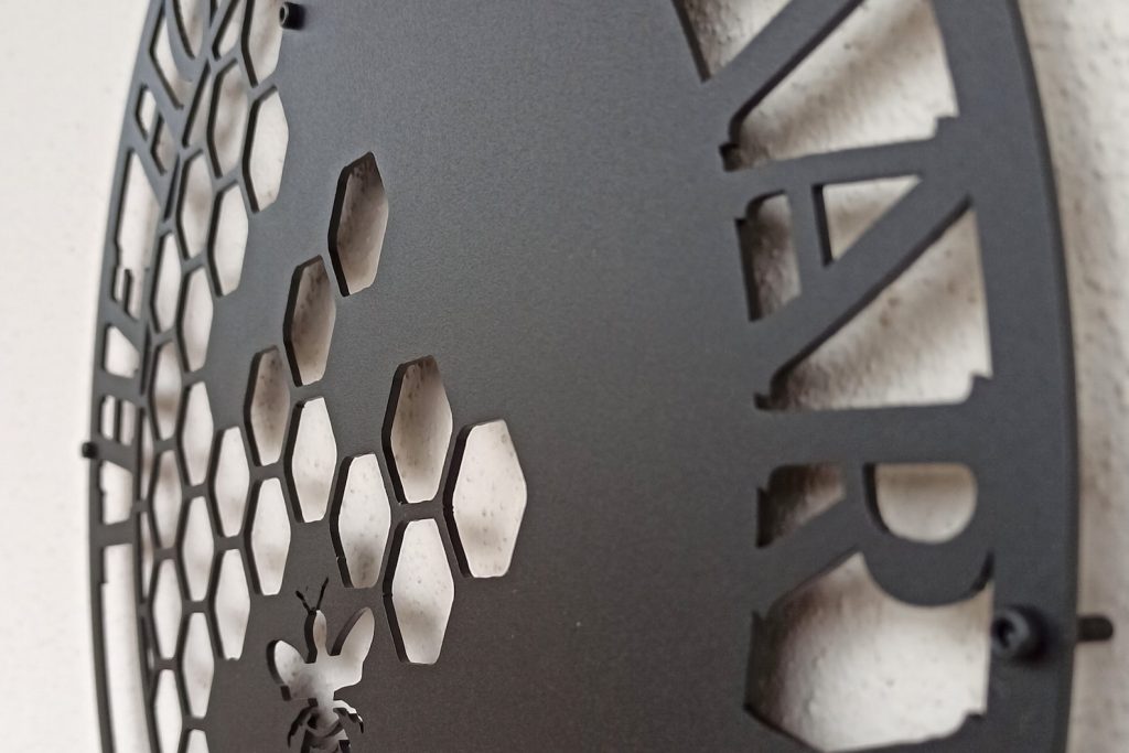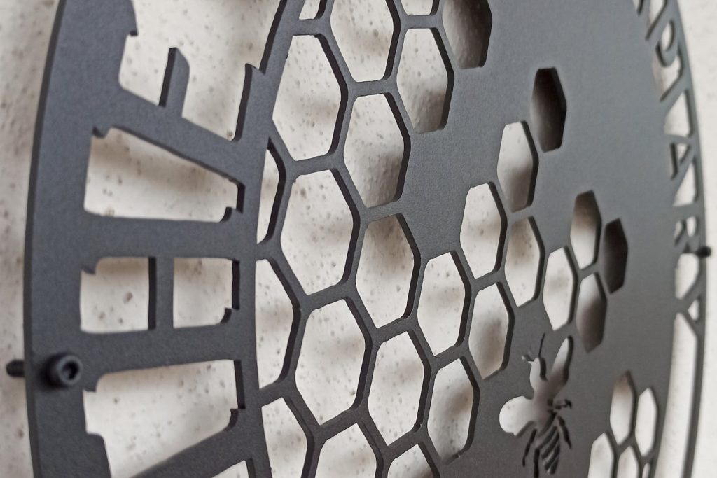 After purchase your order goes through our cutting process where it is designed, programmed, then precisely cut by our top of the line Craftsens fiber lasers. Me then make sure the metal is properly cleaned & cut before going to the next step. Now that the sign has been cut, cleaned it can now go through our powder coating system where your sign is hung and ran though our automated powder line so your sign comes out looking perfect.