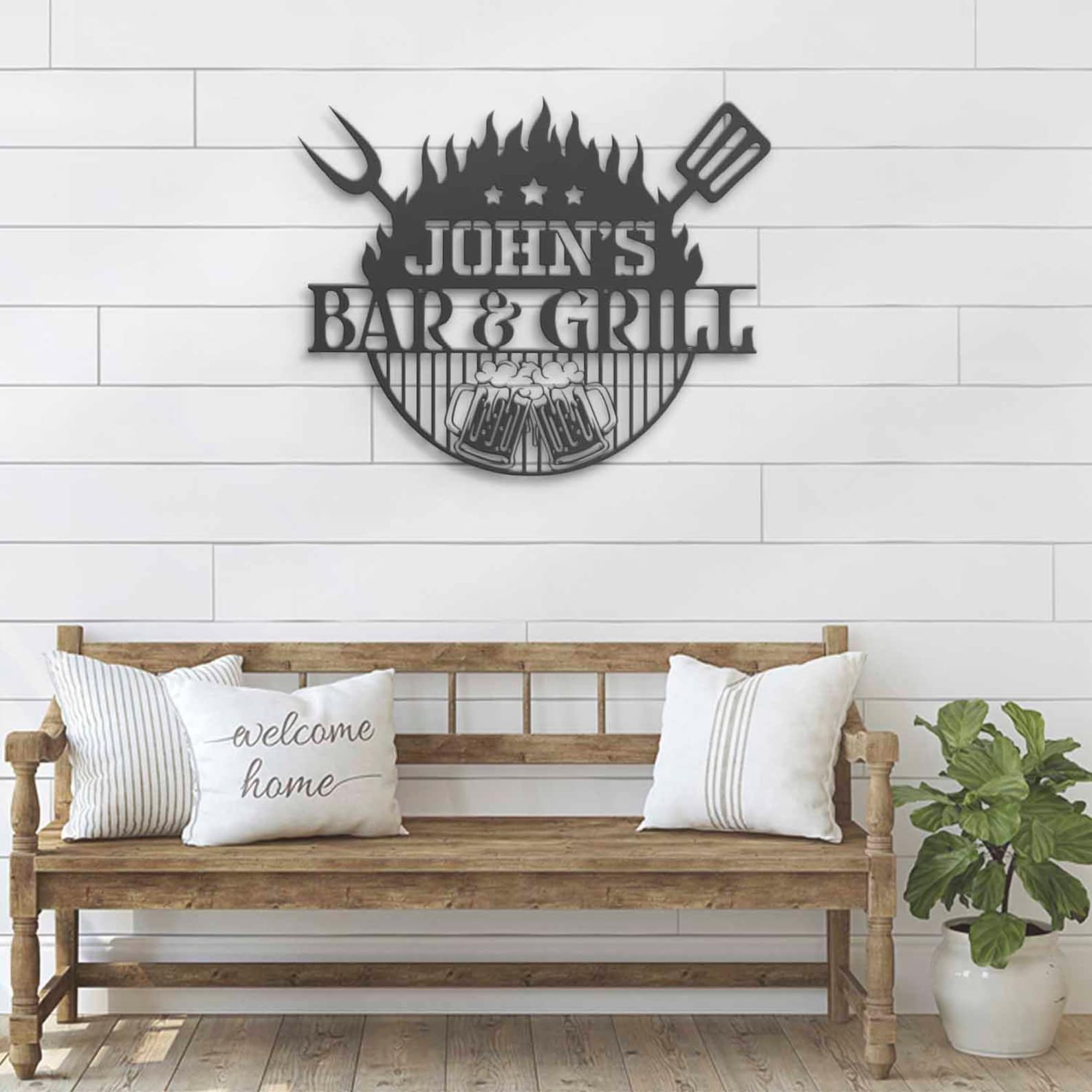 Custom Beer Bar and Grill Metal Wall Art – LED Light Sign