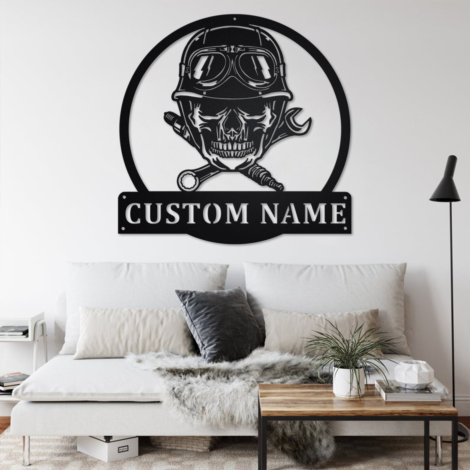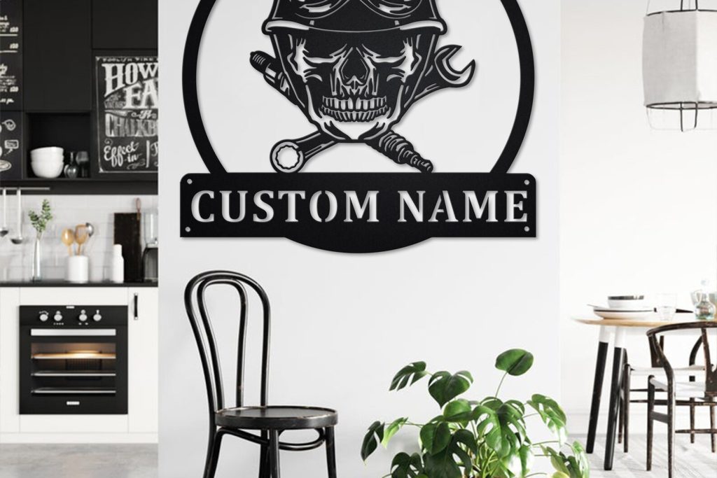 Be the first to review “Custom Biker Skull Metal Sign – Personalized Room Decoration”