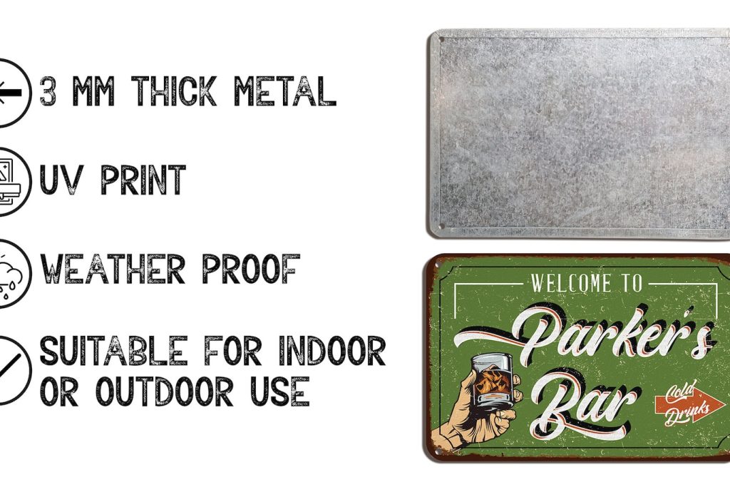 In your kitchen, yard, man cave, garage, poolside or pub, you can get a personalised experience with these metal signs that will give you and your visitors a vintage feel in your office and anywhere. With these metal signs you can design as you like, you can finish your decoration and add a different atmosphere to your surroundings. With this product, you can personalise using the special font character and plenty of background that we have provided you with.