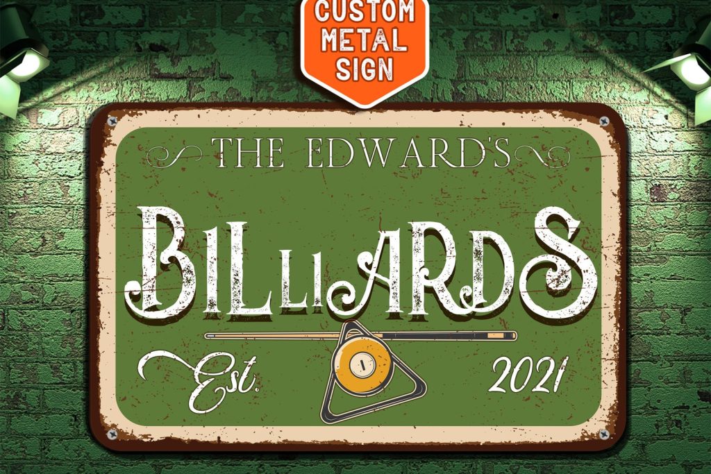 Be the first to review “Custom Billiards Metal Sign – Retro 8 Ball Sign, Man Cave Decor”