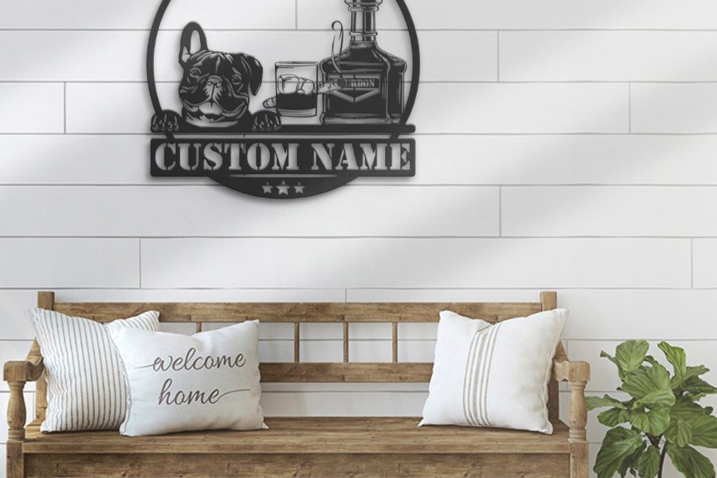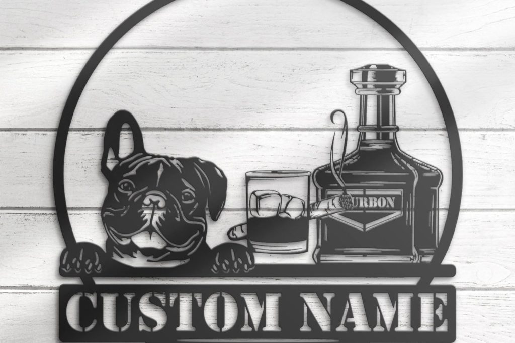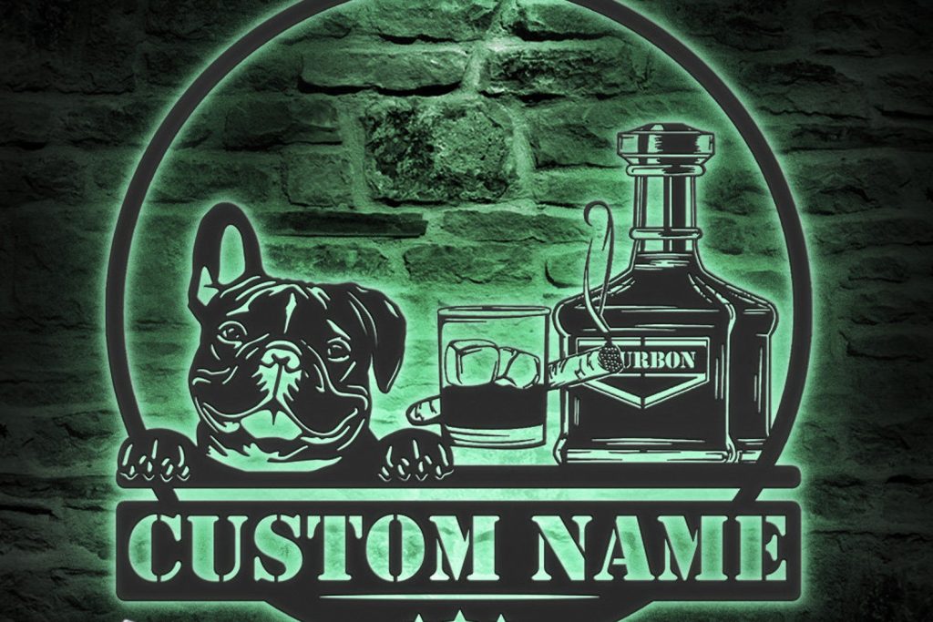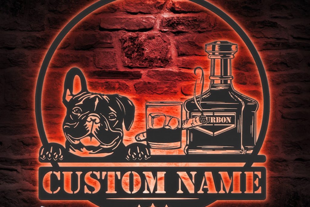 Be the first to review “Custom Bourbon Cigar and French Bulldog Metal Wall Art – LED Light, Personalized Sign”